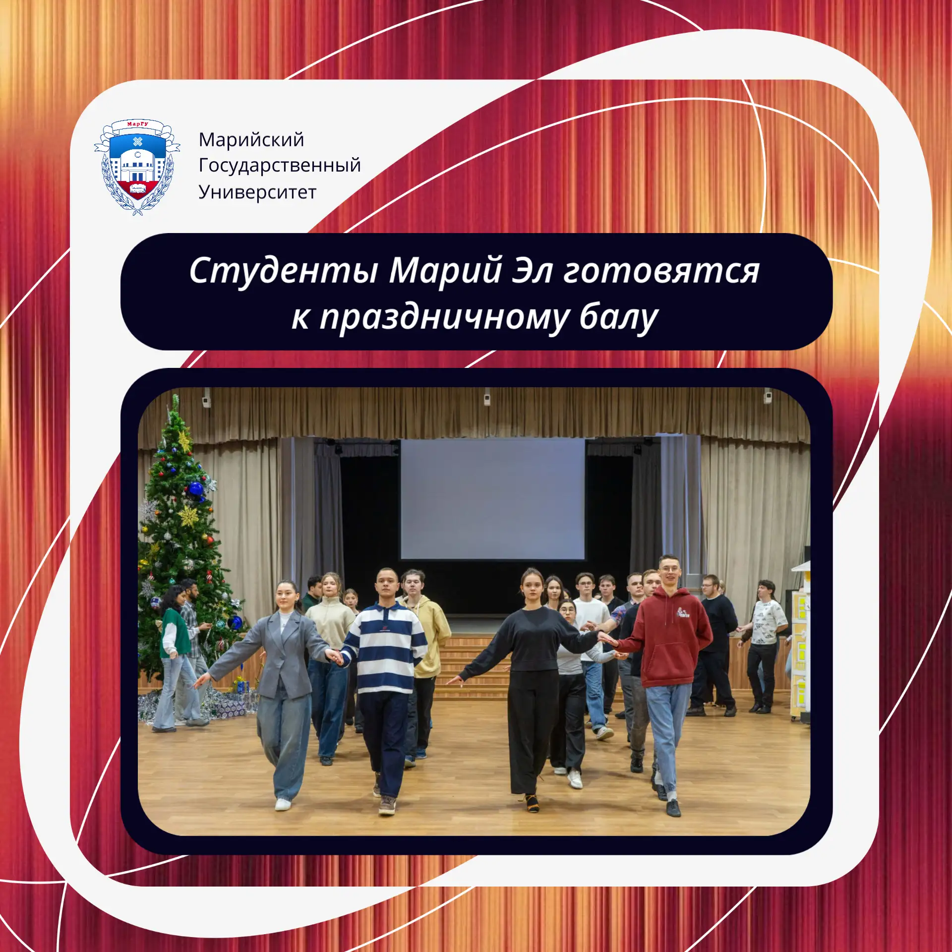 Студенты МарГУ, ПГТУ и МОСИ уже начали репетиции в актовом зале Педагогического института. Больше фотографий по ссылке в нашей группе ❤️