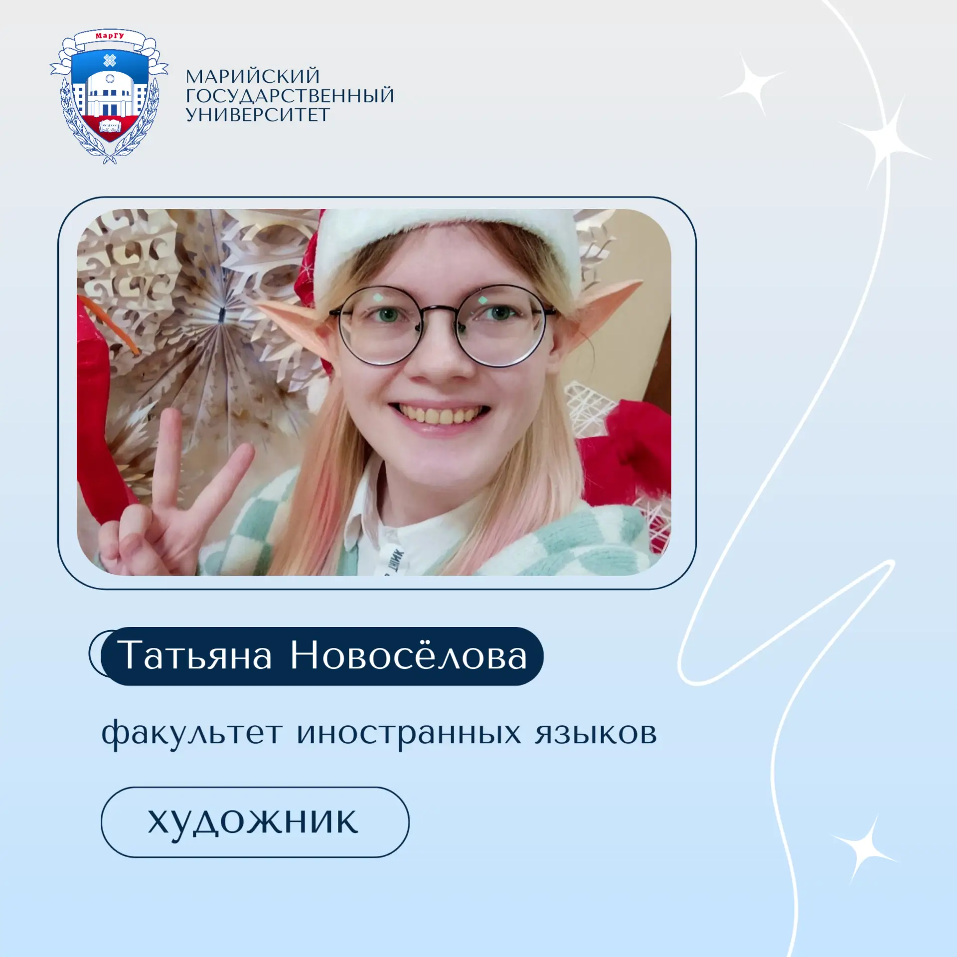 📢 В первом посте знакомимся с Татьяной Новосёловой, студенткой факультета иностранных языков:
