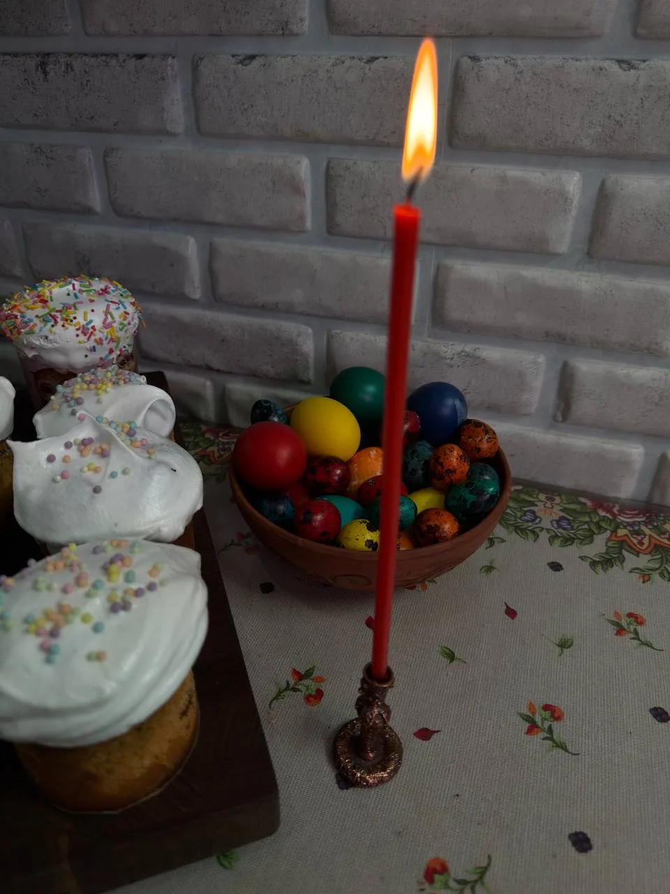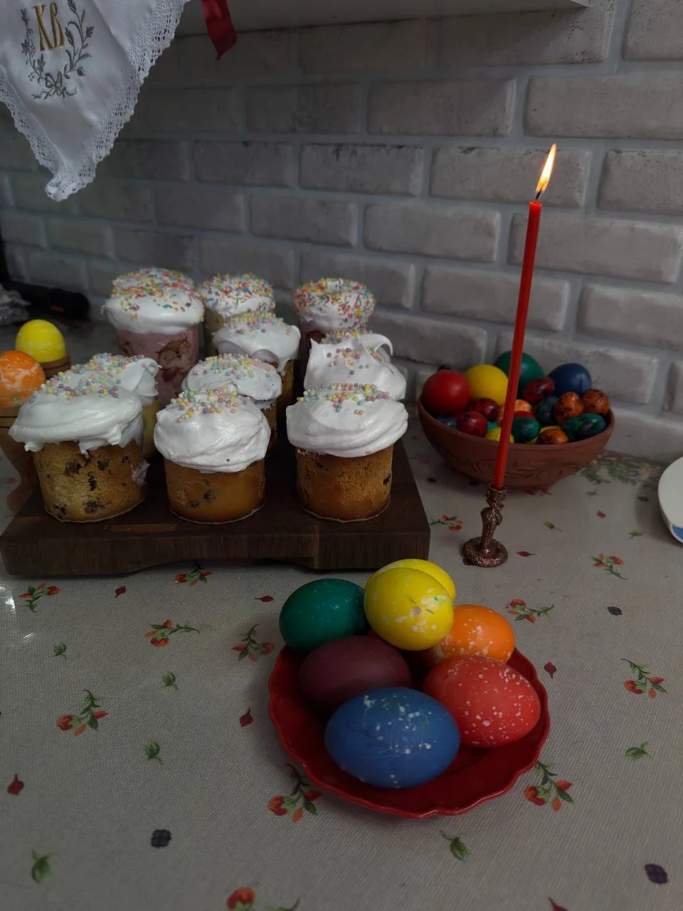 Дома 🏠 накрасили куличики, зажгли свечу. Всех с наступающей Пасхой .