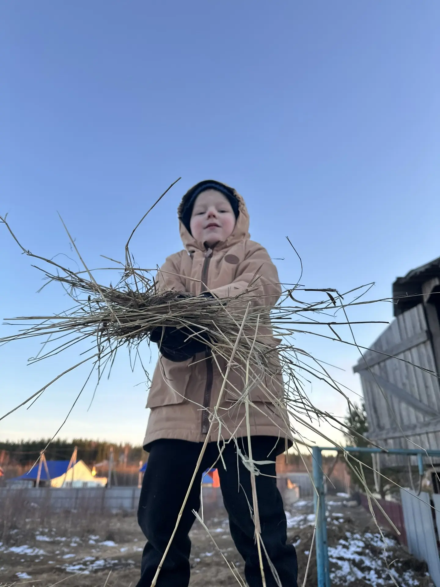 Вчера вечером с моим племянником ❤️любимым ❤️ наблюдали как грузят большие рулоны сена на сеновал. Ура!! Коровы 🐮 будут сытые!!