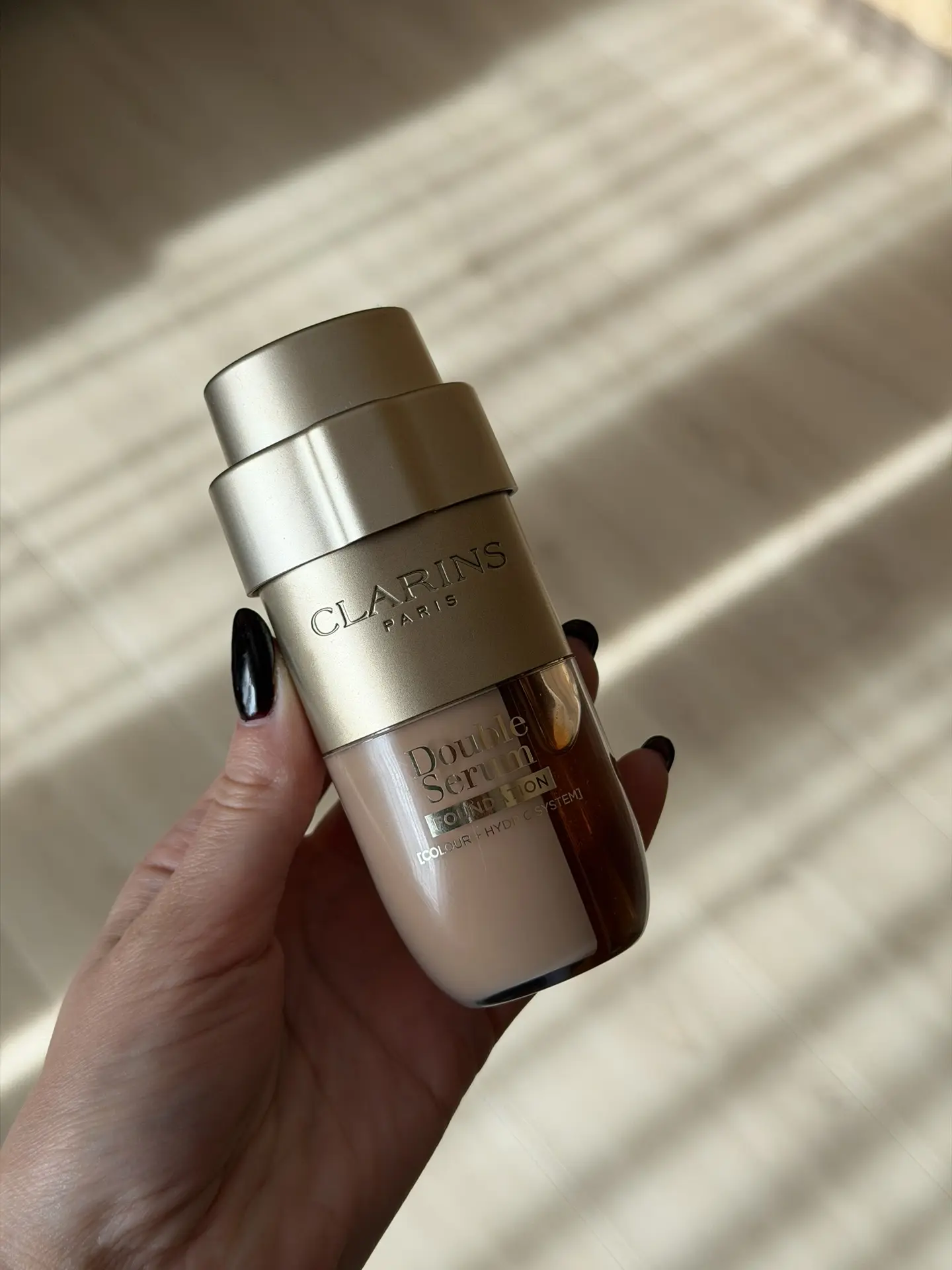 Теперь про тон: как только вышел этот тон, я в первый же день поехала искать его по всей Москве. Потому что моего оттенка, или близко подходящего к моему типу кожи не было. Еще в магазине я умудрилась протестить его, и нанесла тон на все лицо, смыв мицеляркой весь макияж 🤭 Вывод: это лучший тон за все мои года! Он прям как вторая кожа. Тон легко можно наслоить, чтобы перекрыть какие-то «неприятные моментики». Ну и в конце концов, эта баночка совмещает в себе тон + мою любимую сыворотку от Clarins Double Serum 🤍