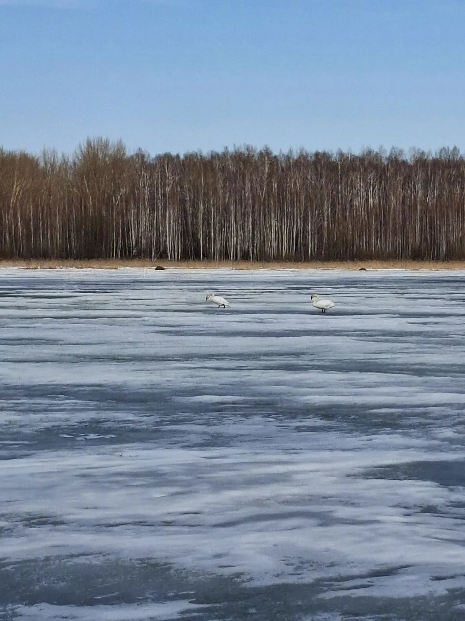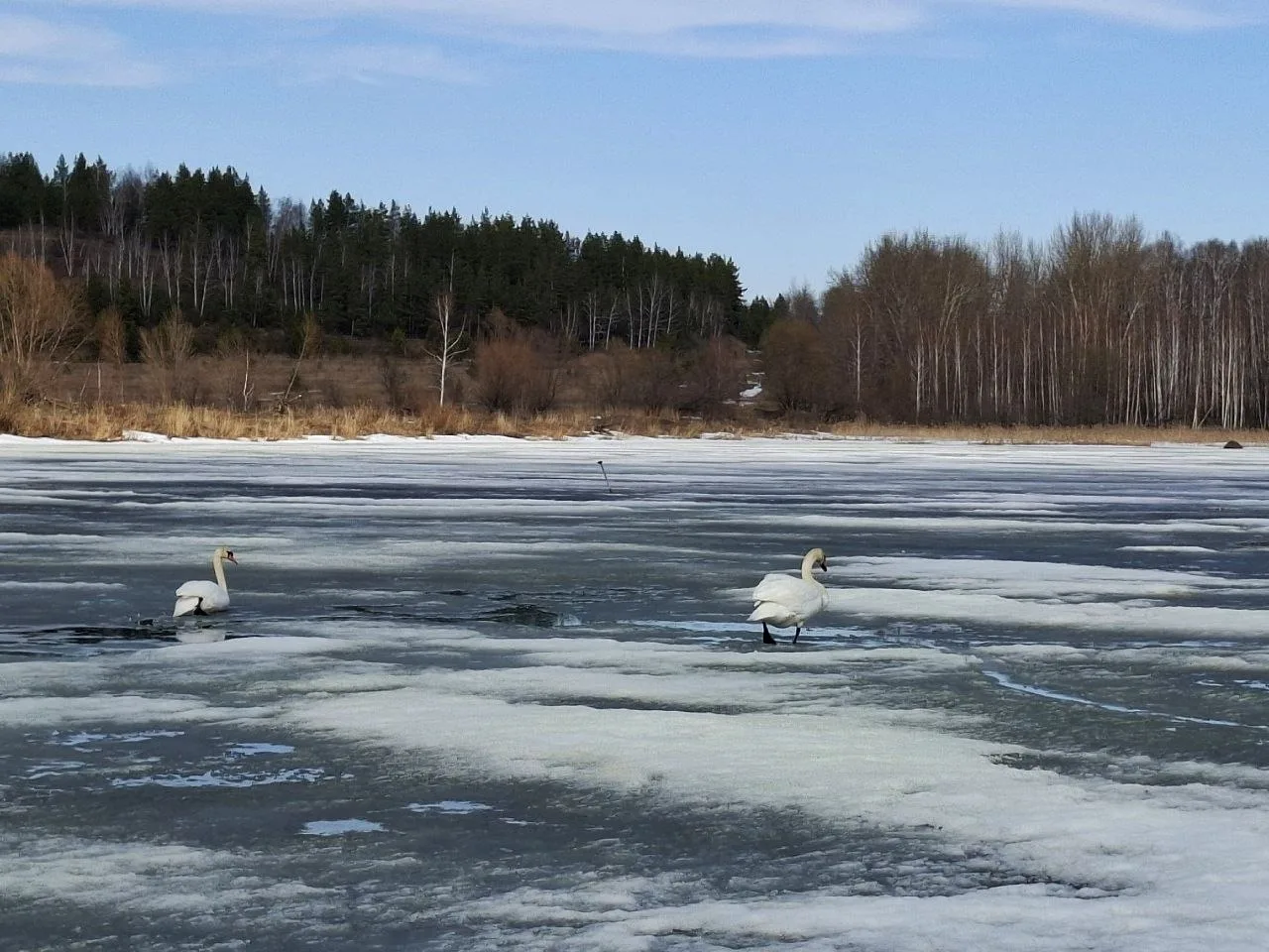 Привет от беззаботной парочки лебедей из природного парка "Кандры-куль", которые только вернулись после зимовки.