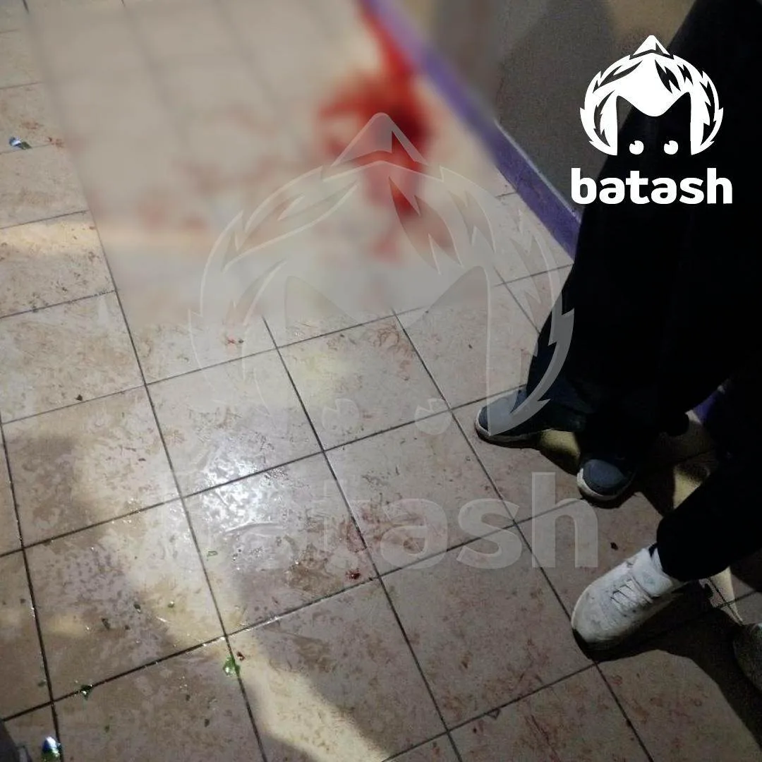 После нападения весь этаж в крови и разбитых стеклах. При задержании парень сопротивлялся и ранил двух полицейских. Ещё пострадал охранник — предварительно, у него два ножевых.