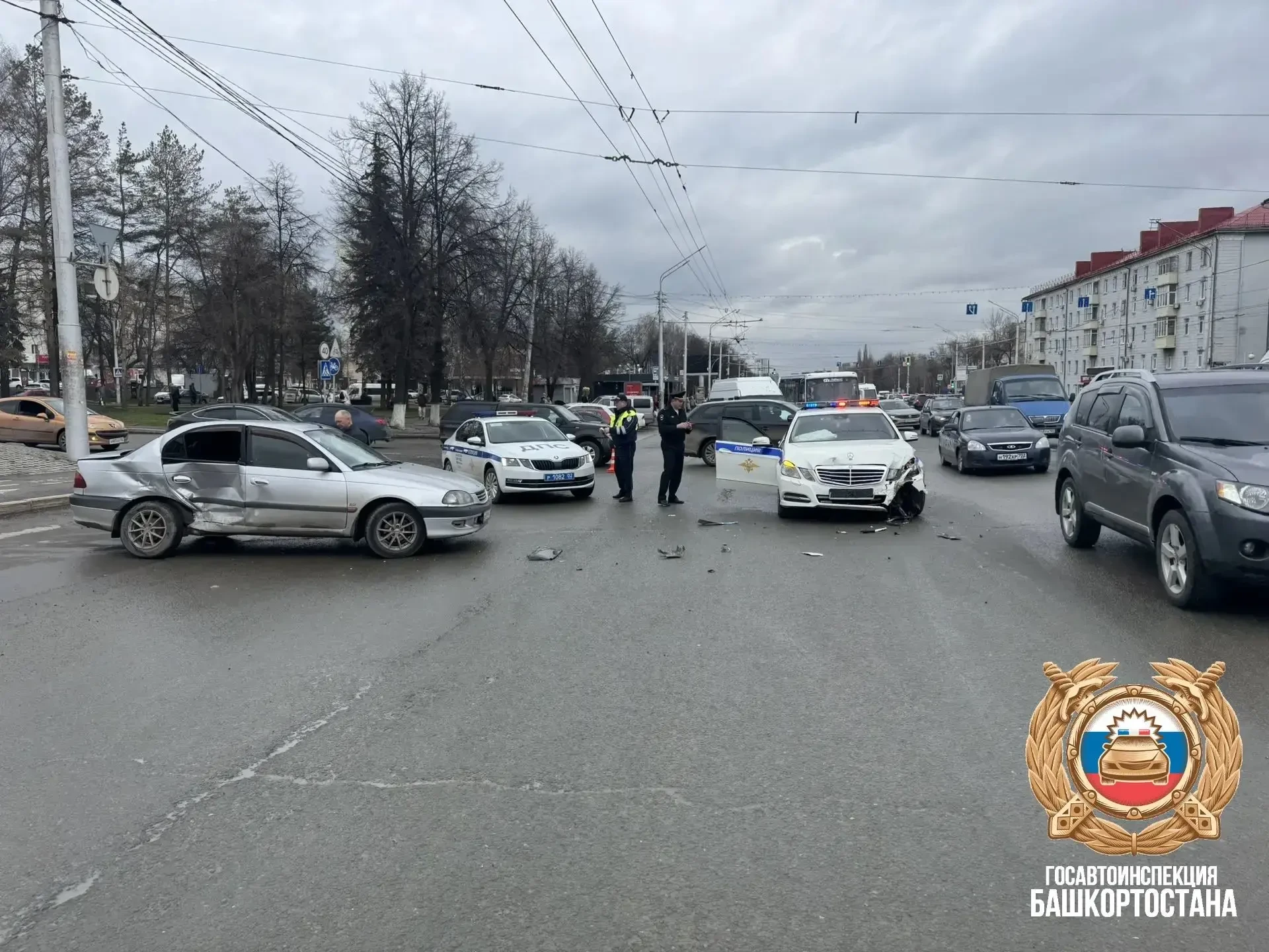 "Мерседес" ГИБДД попал в аварию в Уфе.