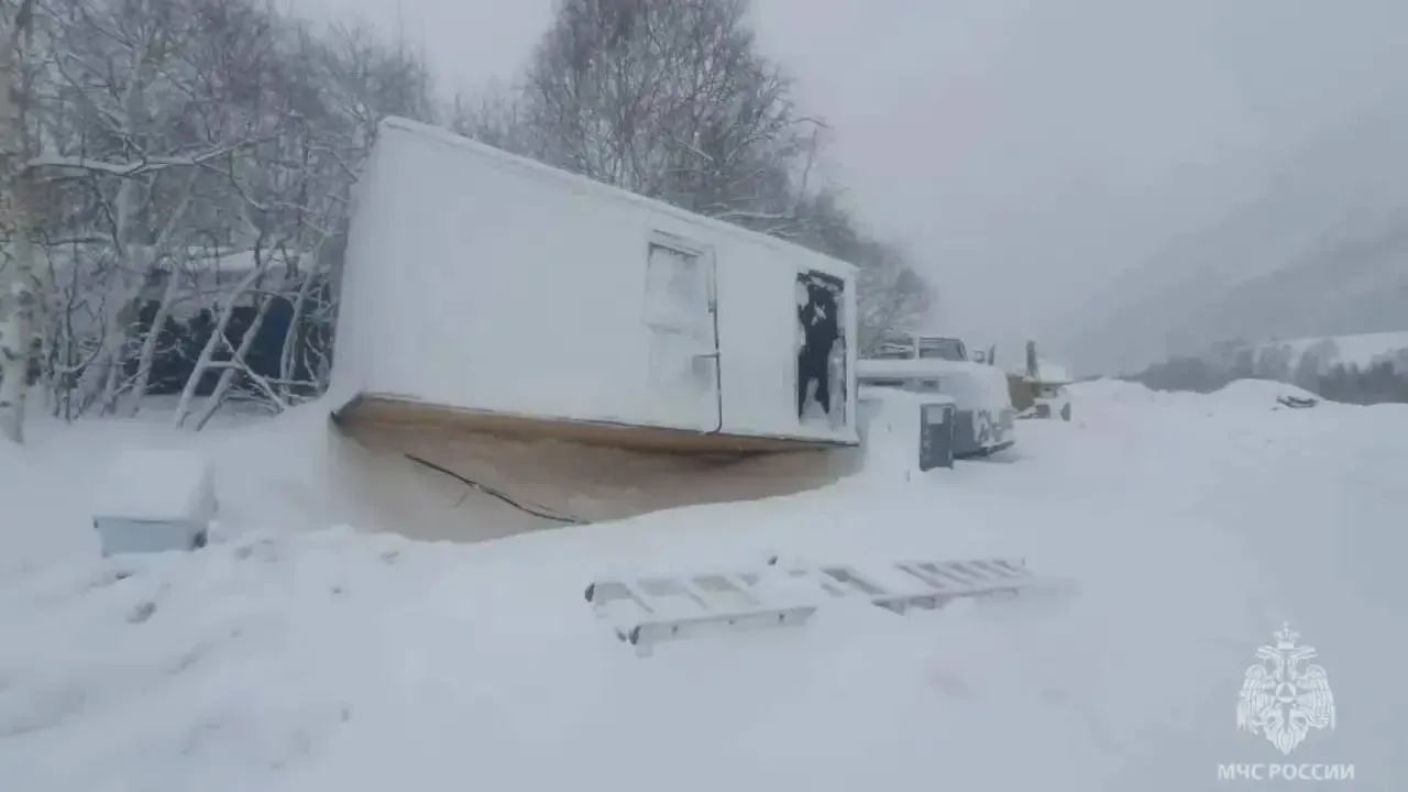 135 тысяч кубов снега зацепили ещё хозпостройку и две машины. Никто не пострадал, сотрудники МЧС разгребают завалы.