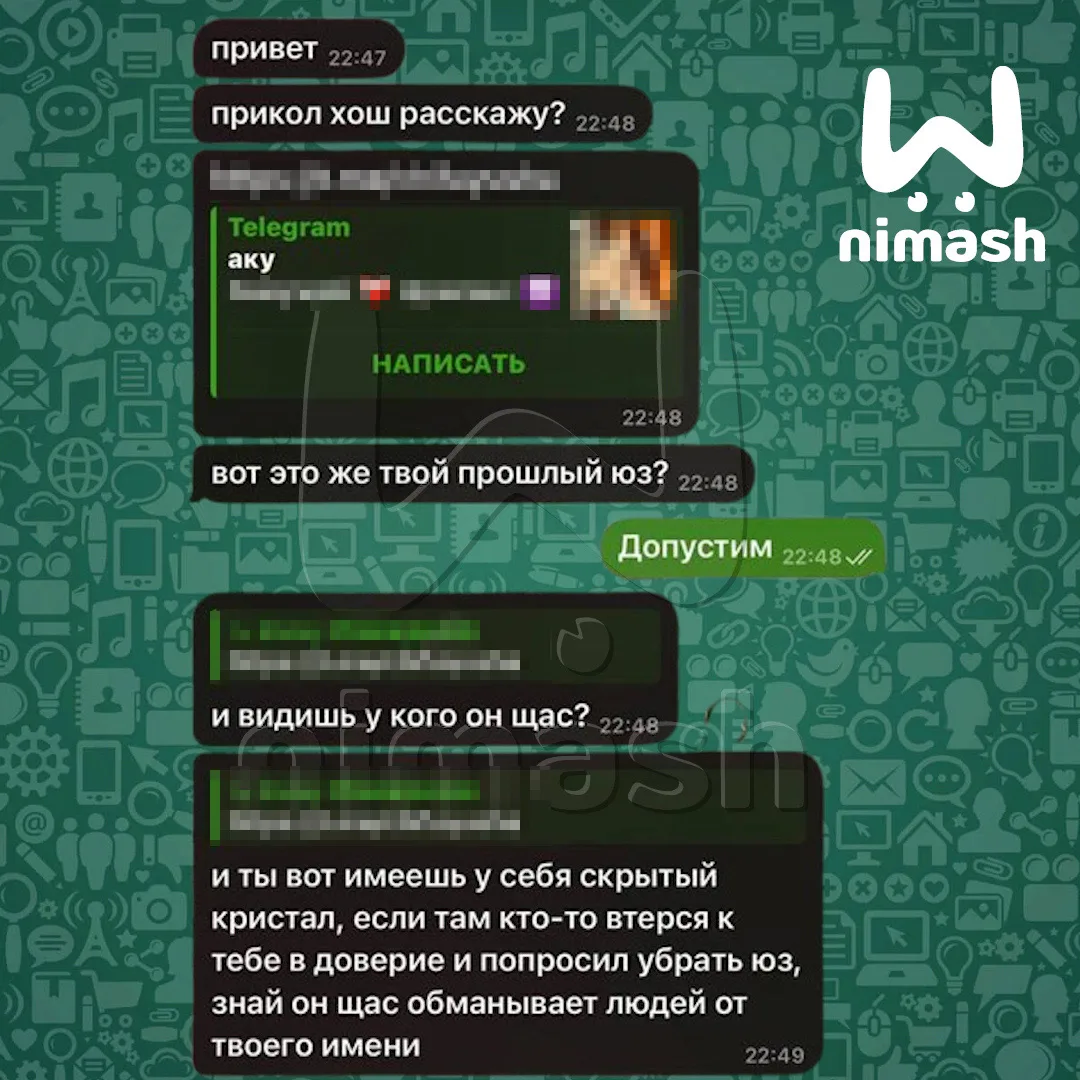 А теперь о нашем скамере. Он действовал довольно просто: нашёл в тг девчонок 13-14 лет, в аккаунтах которых хранились топовые подарки, и присел на уши. Рассказал, что страницы могут взломать, и тогда прощайте кристаллы. Посоветовал перекинуть их в безопасное место, а дальше вы и сами догадываетесь.