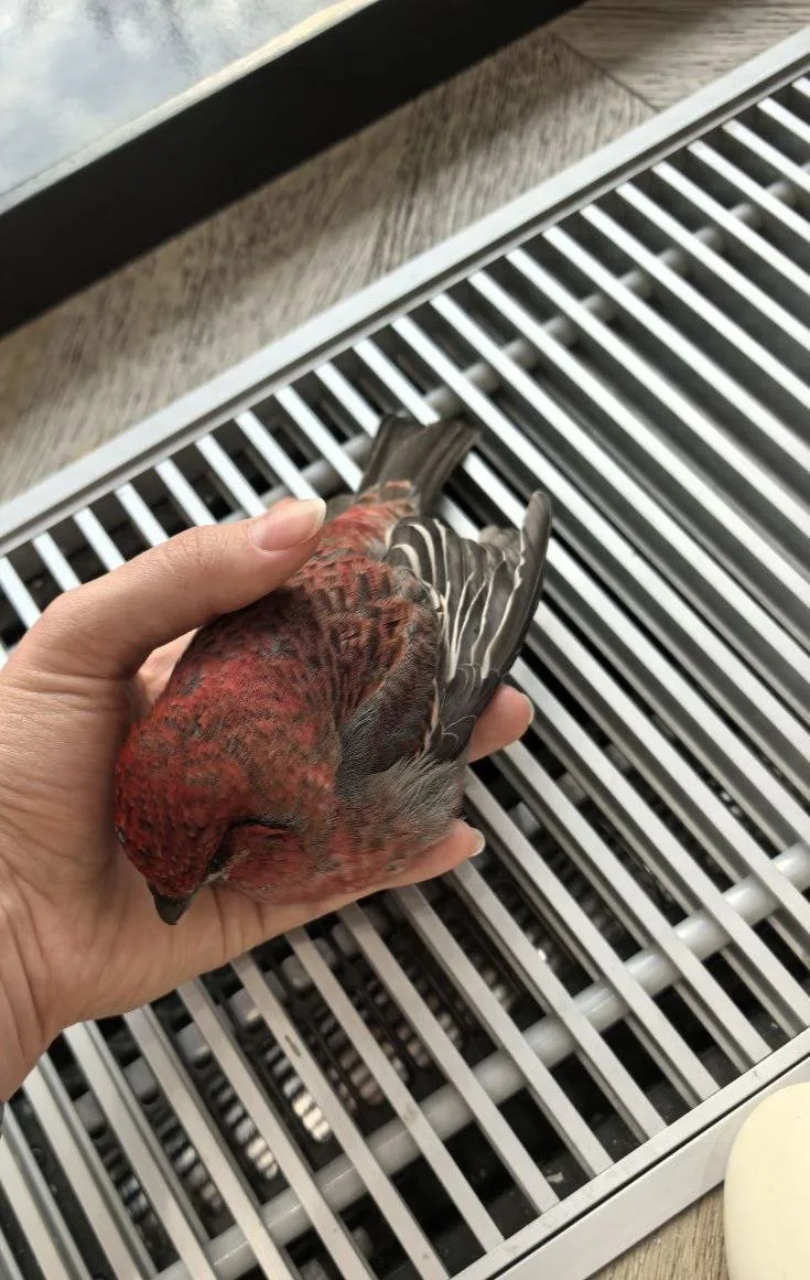 Птичка еле живая лежала в снегу, её заметил прохожий и занёс в бутик на Алексеевской, где как раз работает Катя. Она забрала пернатую домой и выходила. Пока что малиновая красотка живёт в клетке, но Катя обещает, что выпустит её на волю, как только потеплеет.