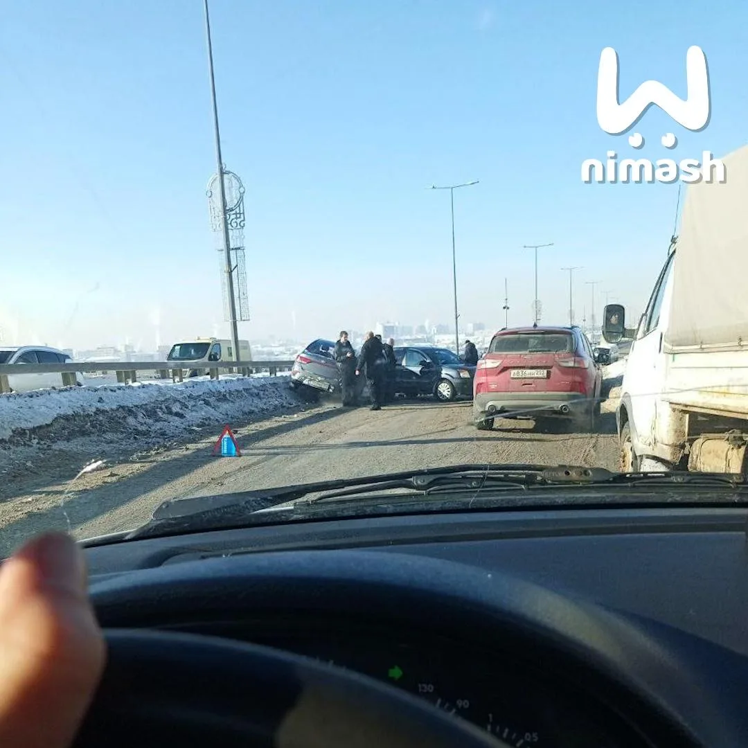 Несколько легковушек столкнулись на Метромосту в Нижнем. Движение в сторону нижней части города встало.