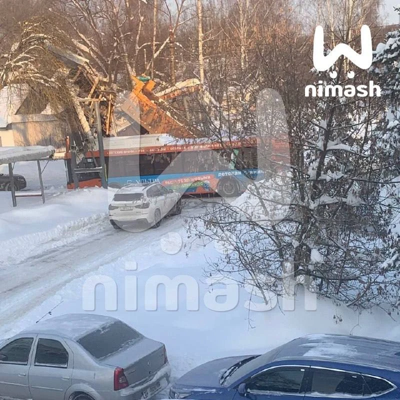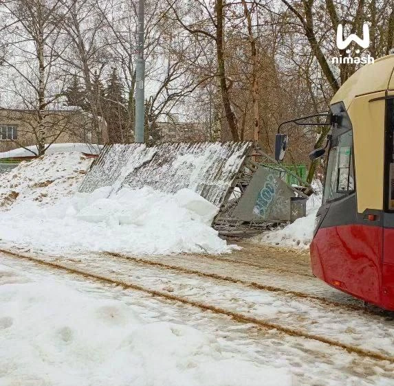 Трамвайная остановка рухнула под тяжестью снега на улице Глинки.