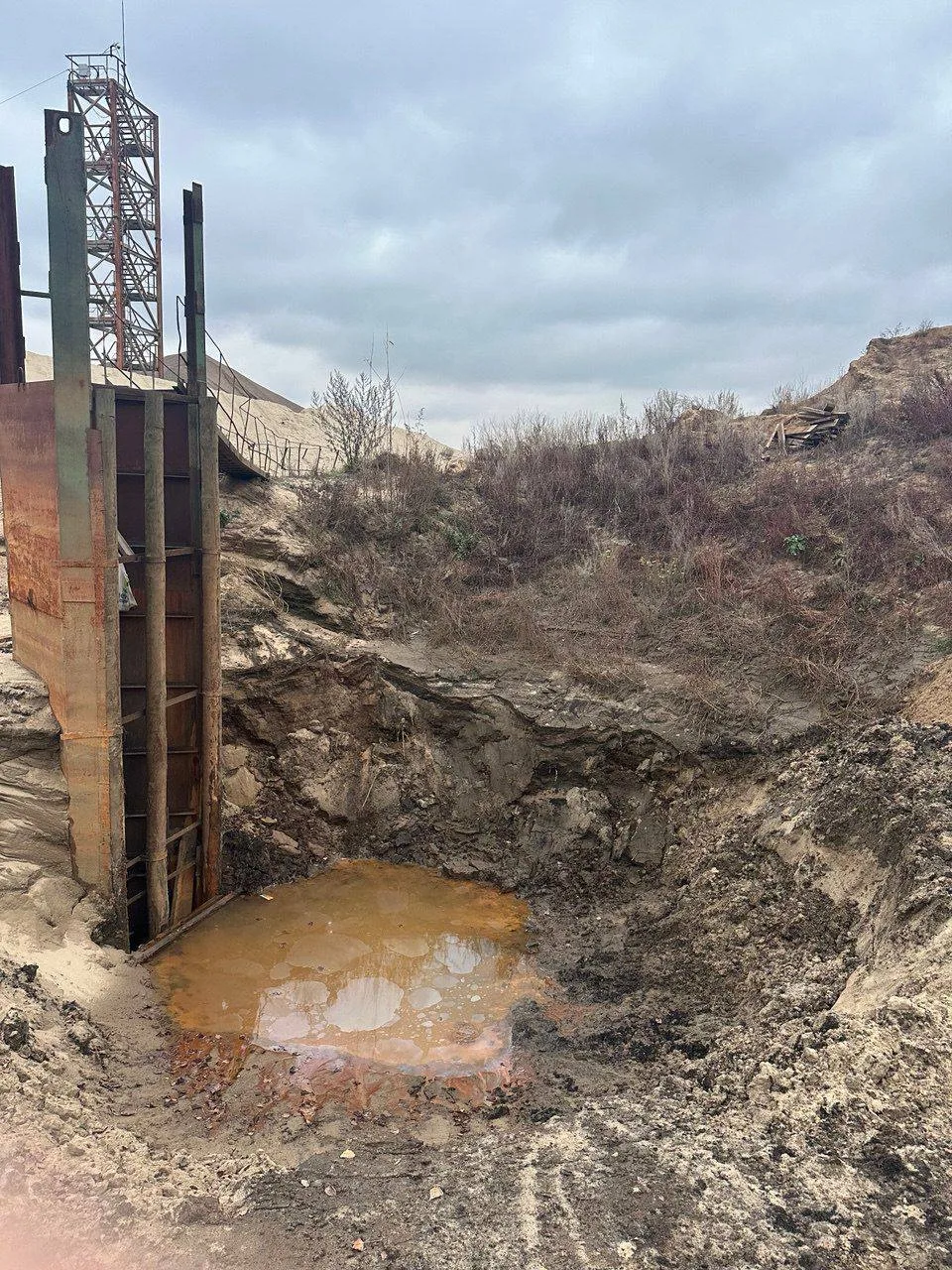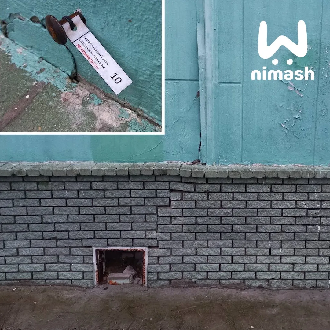 Грунт поехал над гидротехническим тоннелем реки Ржавки. Вокруг дыры поставили ограждения, но она продолжает расти. На стенах кинотеатра установили осадочные маркеры, чтобы контролировать обвал.