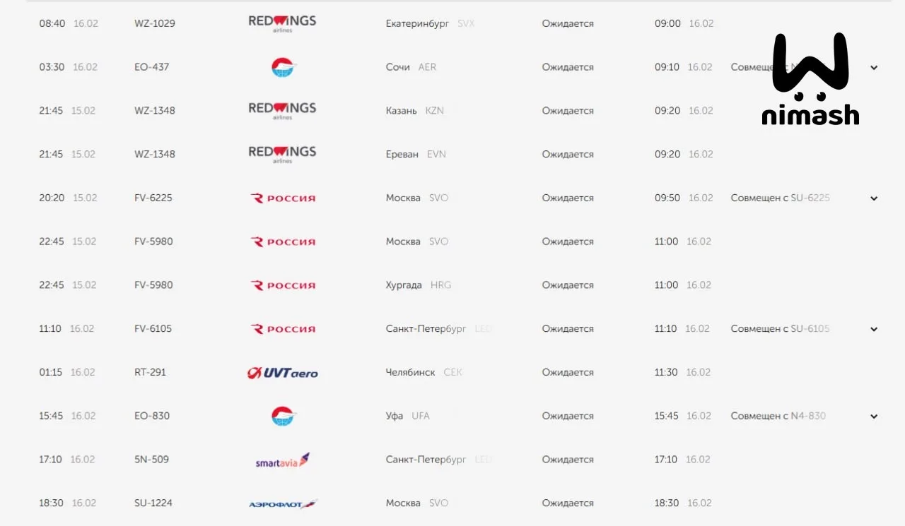 Семь рейсов, которые должны были прилететь ещё вчера, перенесли на утро. Ещё три не отправили, один — отменили.
