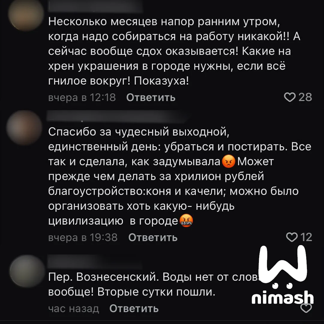 Недовольный народ стал выплескивать эмоции в Сети — многие пишут, что городу не нужны новогодние украшения, когда в кране пусто.