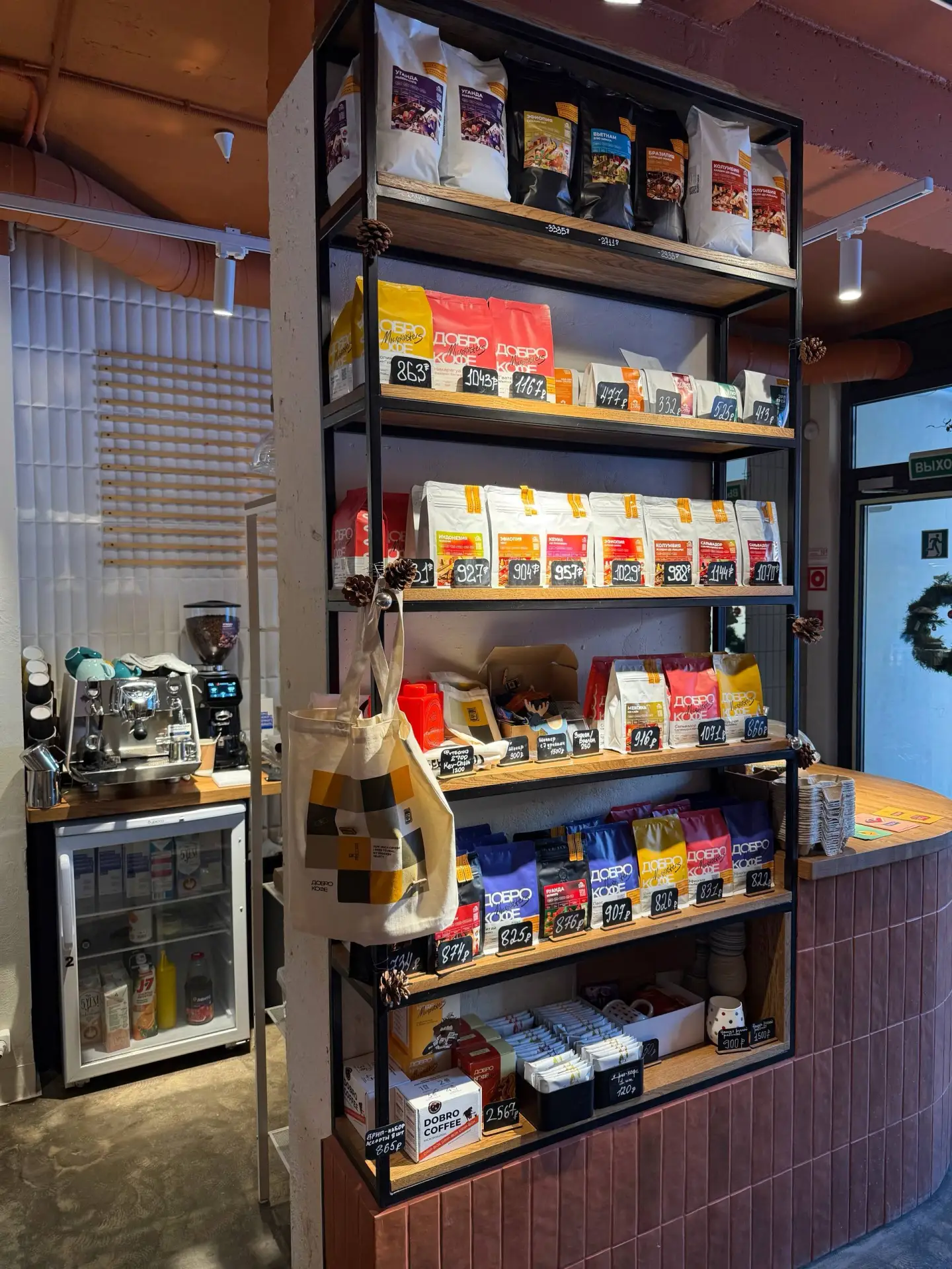 ☕️ Это собственная кофейня питерских обжарщиков Dobro Coffee Microroasters, поэтому зерно тут отличное! Мы пробовали фильтр (230₽/маленький), капучино (285₽/маленький) и ванильный раф (370₽), понравились все 3. Пачки зёрен, дрипы и мерч можно купить домой 💗