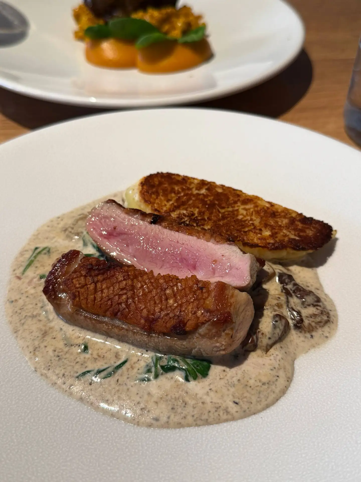 🍴 Гребешки с белыми грибами и картофельным гратеном (1370₽) - очень понравилось блюдо, нежное, сливочное и сытное.