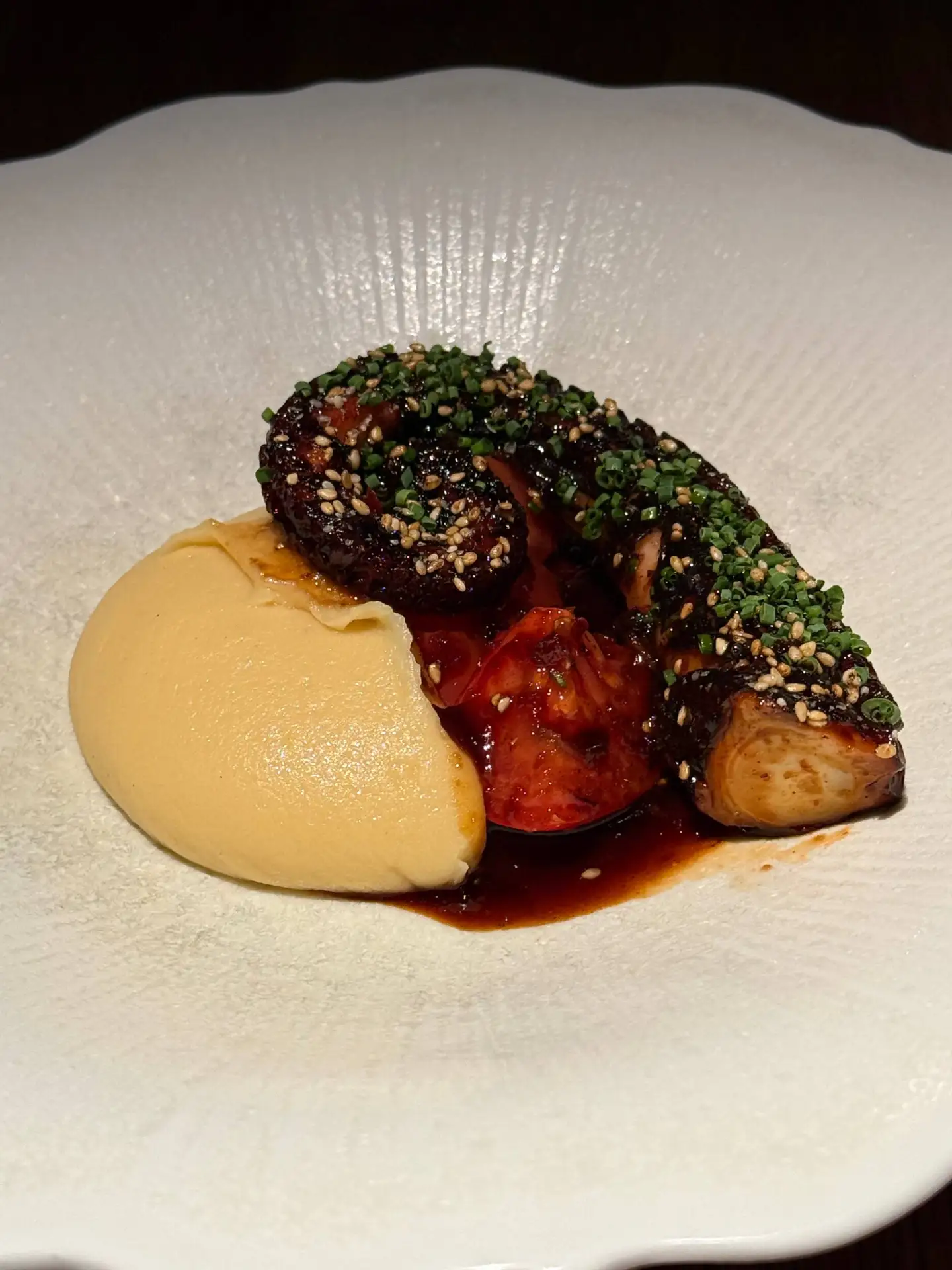 🐙 Сувлаки из осьминога с картофелем на греческом йогурте (1420₽) - вот это не зашло, осьминог мне показался суховатым и пересоленным.