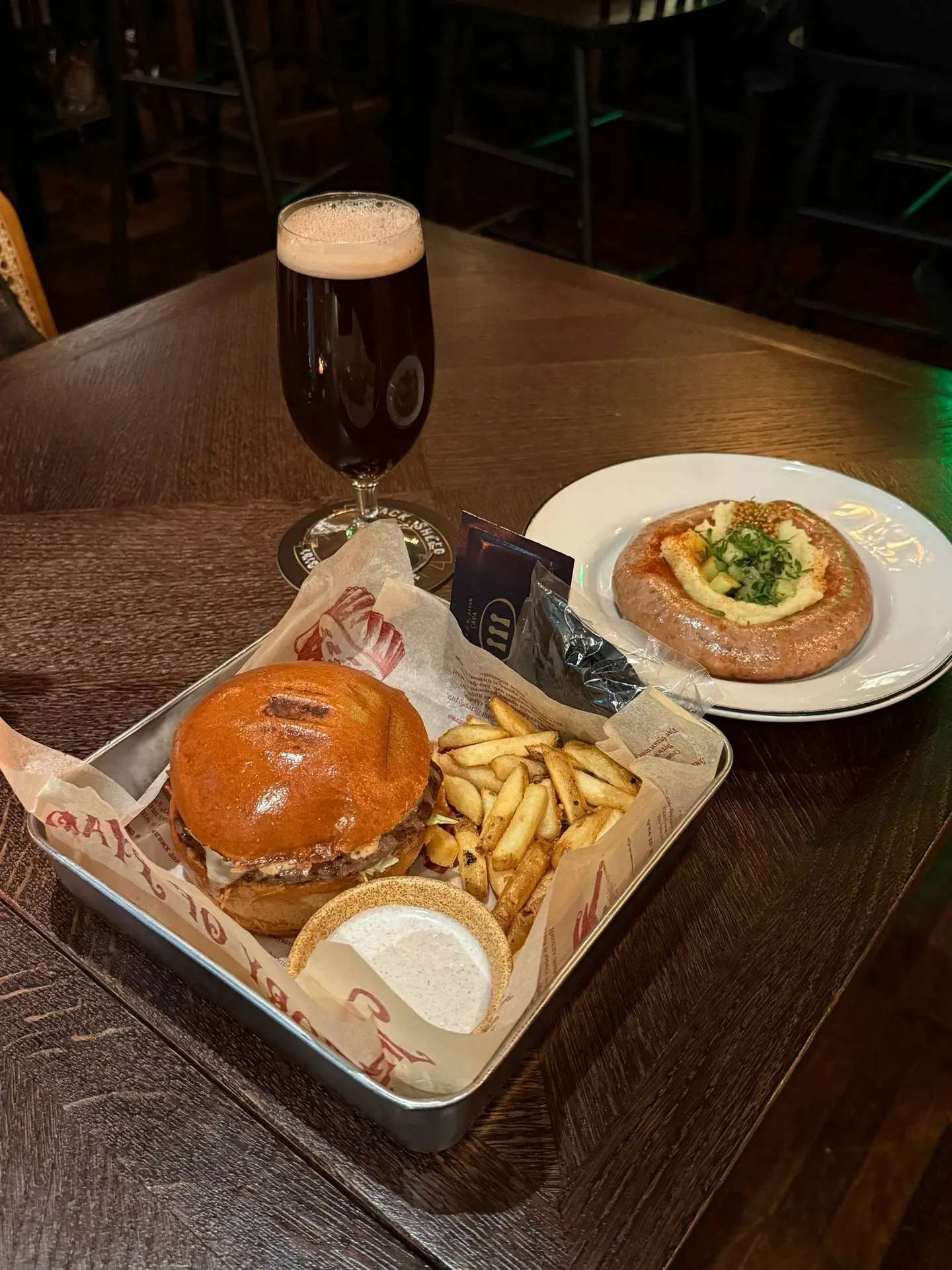 Это настоящий современный паб с качественным пивом и разнообразными сытными блюдами. Интерьер традиционный, а сейчас ещё и по-новогоднему уютный 🥰