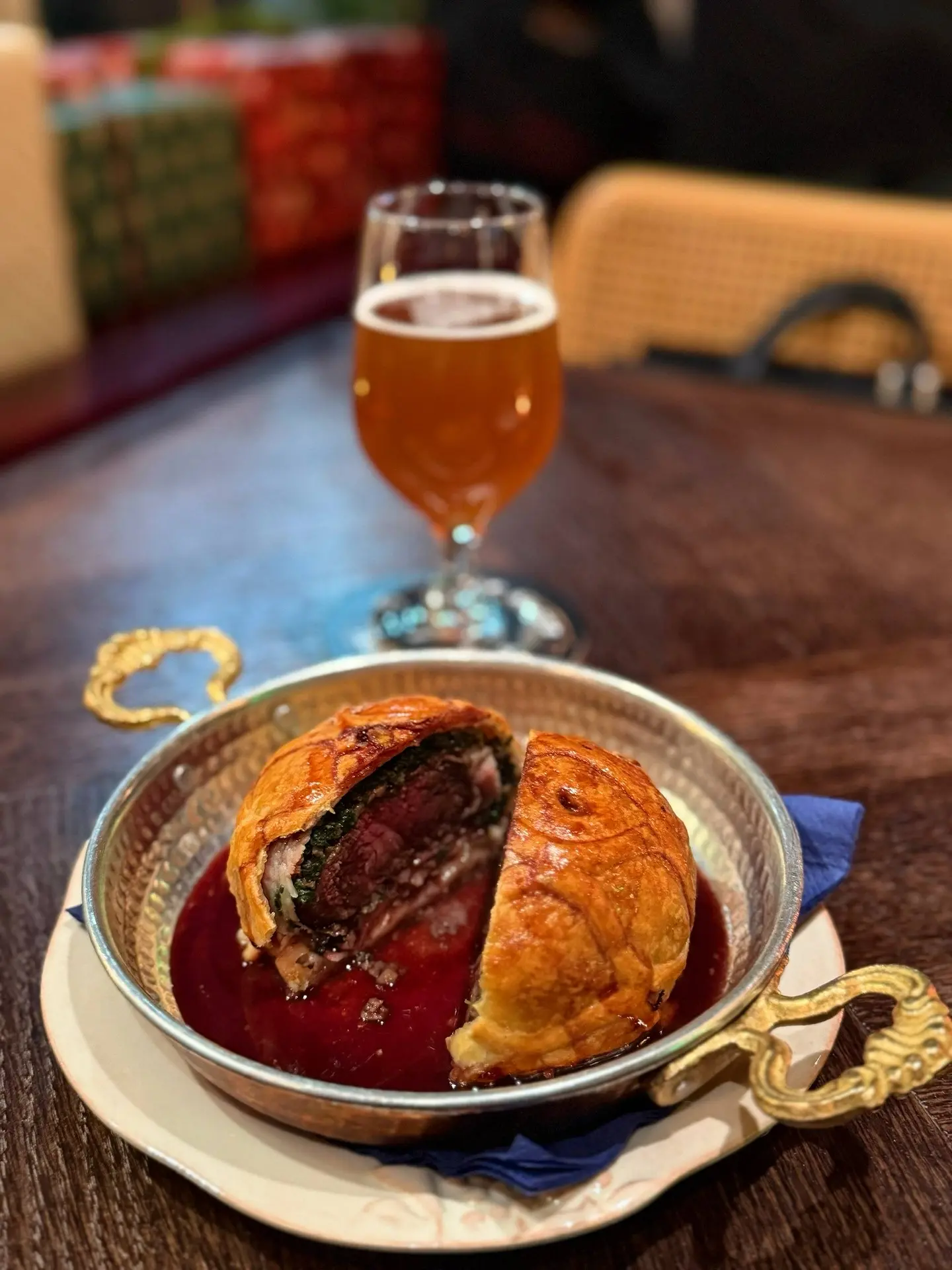 🥩 Веллингтон с соусом порто (2190₽) - классика и одно из наиболее эффектных блюд английской кухни, нежная говядина с грибами, беконом и луком, запечённая в тесте, очень вкусно и сытно!