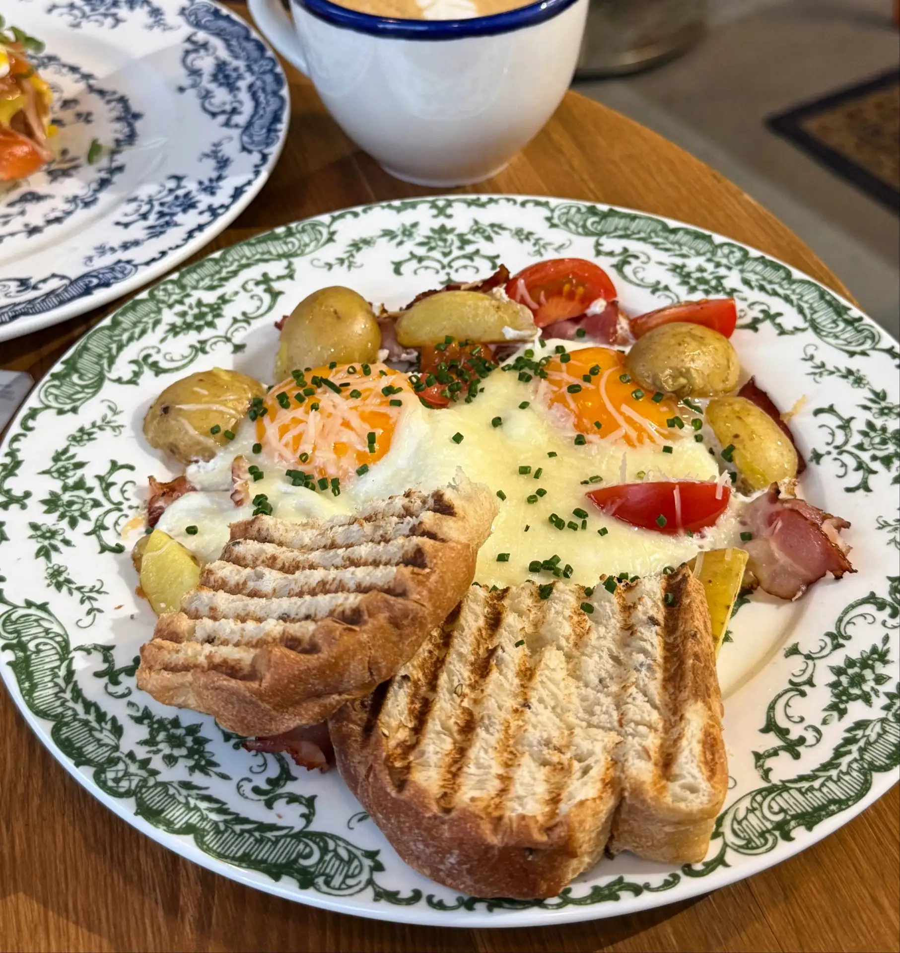 🍳 Деревенская яичница с картофелем и беконом (520₽) - сытная классика.