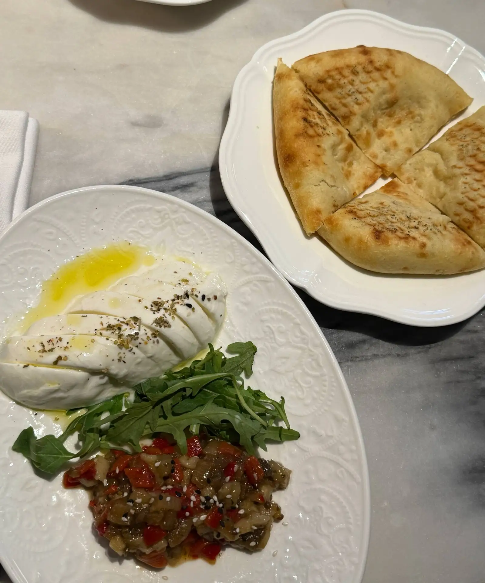 🧀 Моцарелла с печёными овощами (720₽) - отличная лёгкая закуска, подаётся с лепёшкой;