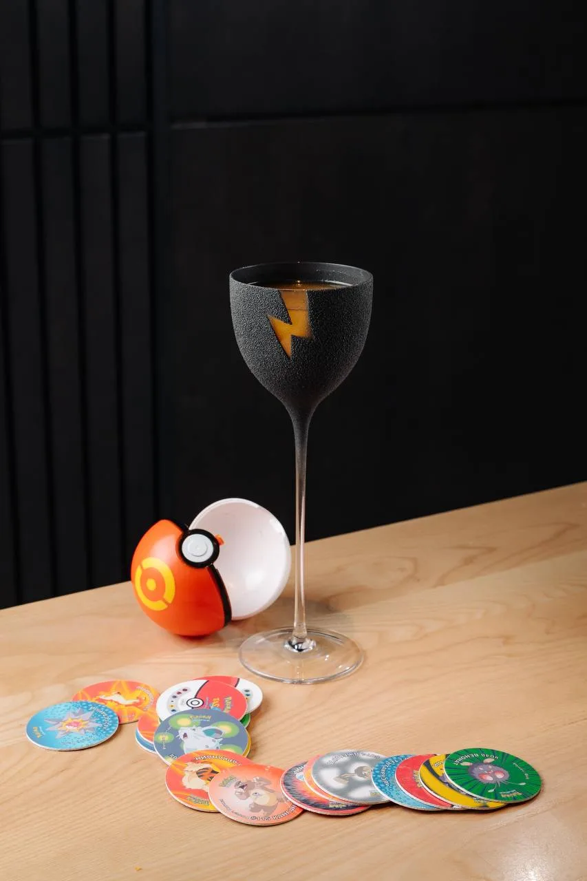 😮 Это что за покемон? — игровая подача с теми самыми покеболами с элементом сюрприза, в составе коктейля дистиллят тимут, джин и кордиал каламанси–маракуйя.