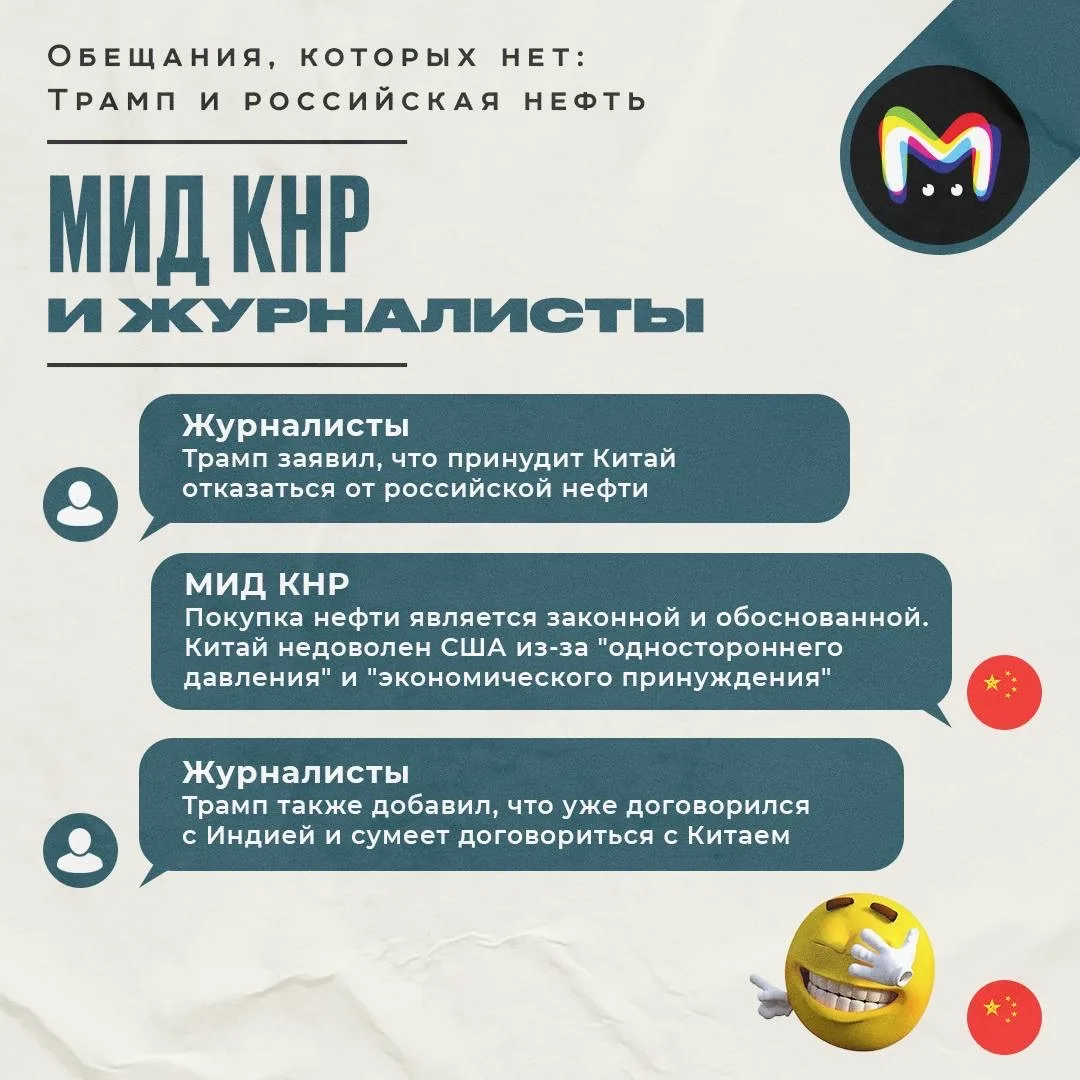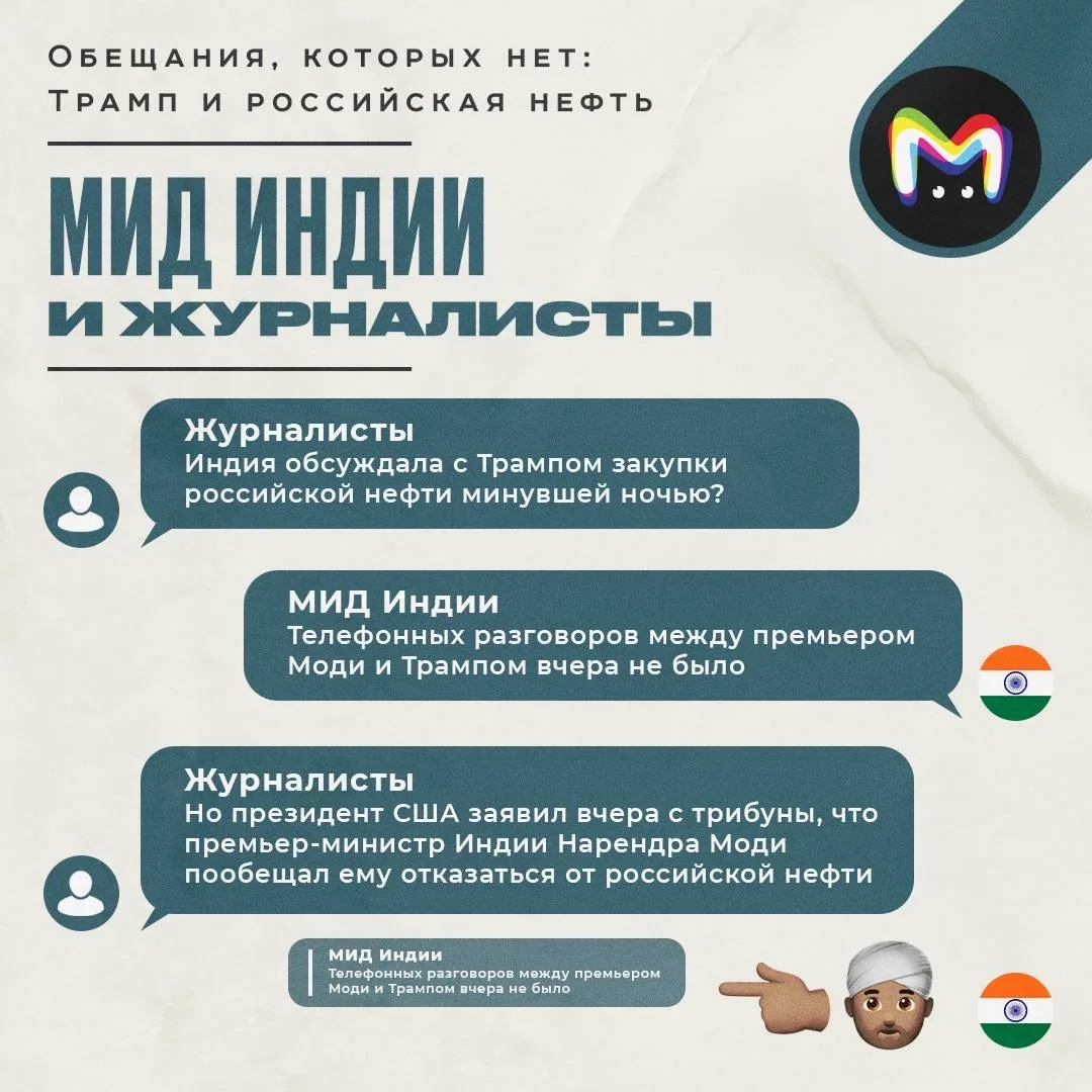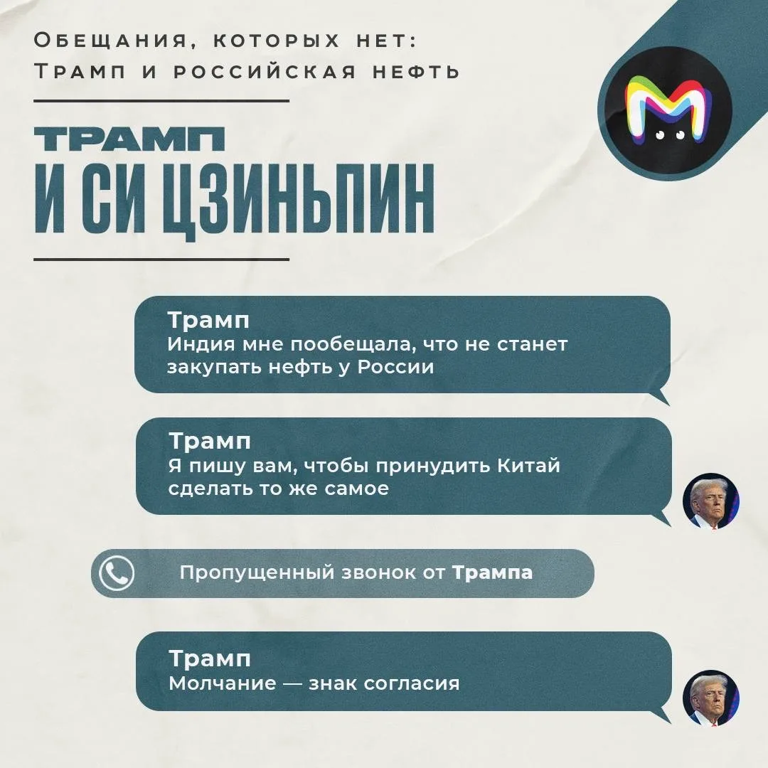Тем временем Индия и Китай неминуемо откажутся от российской нефти. По крайней мере, в этом уверен Трамп, который вчера раздал новую порцию заявлений.