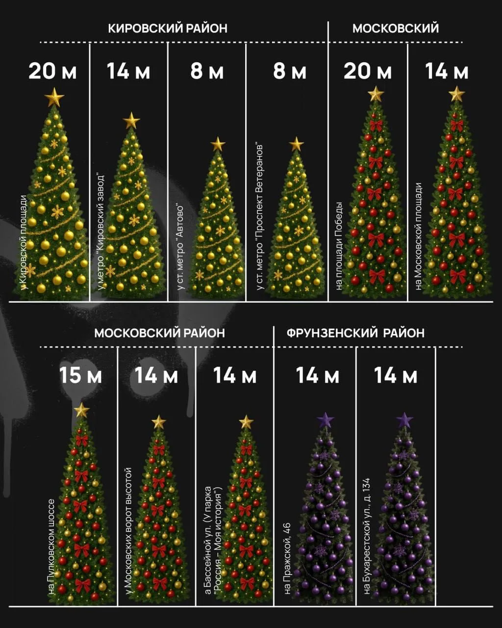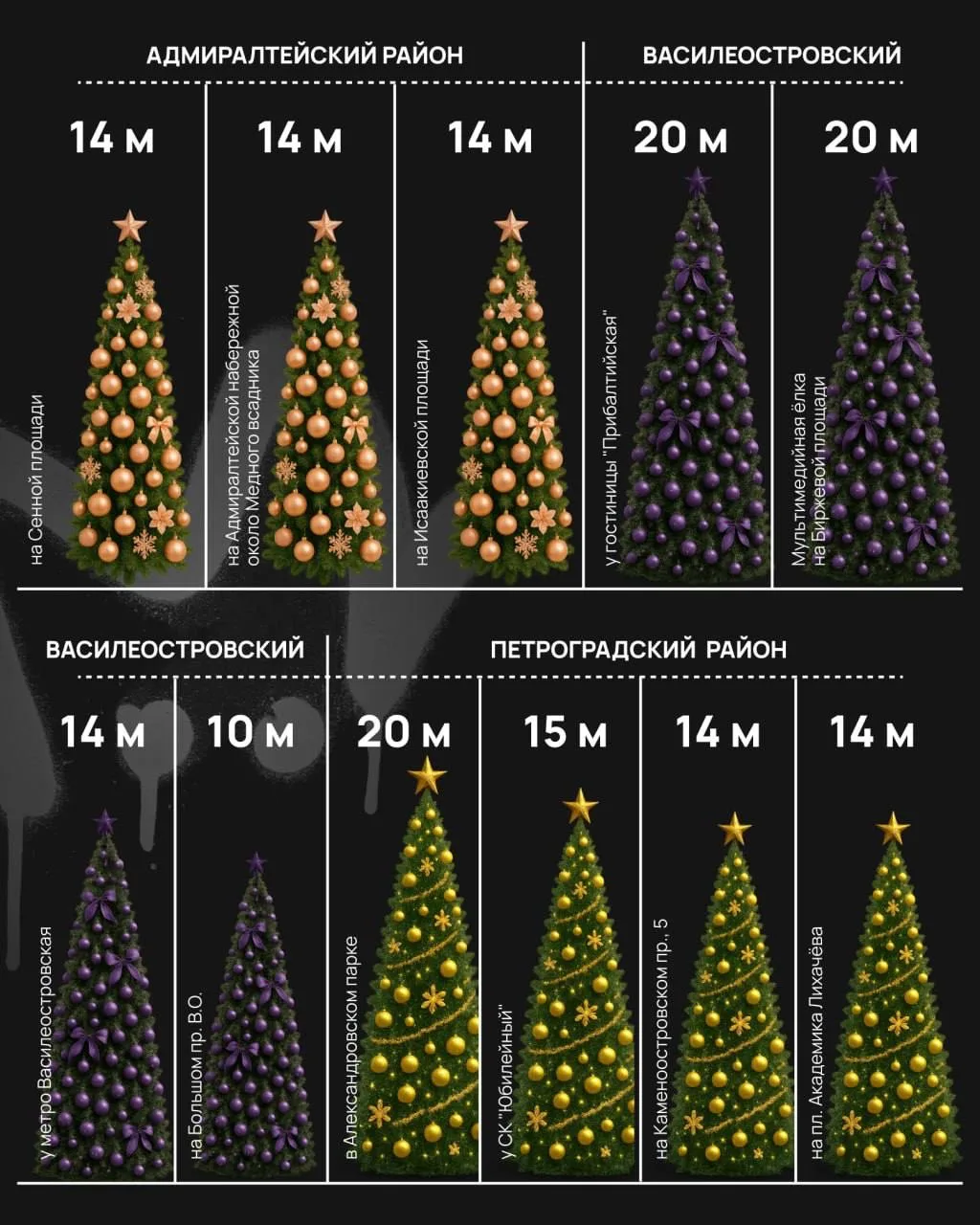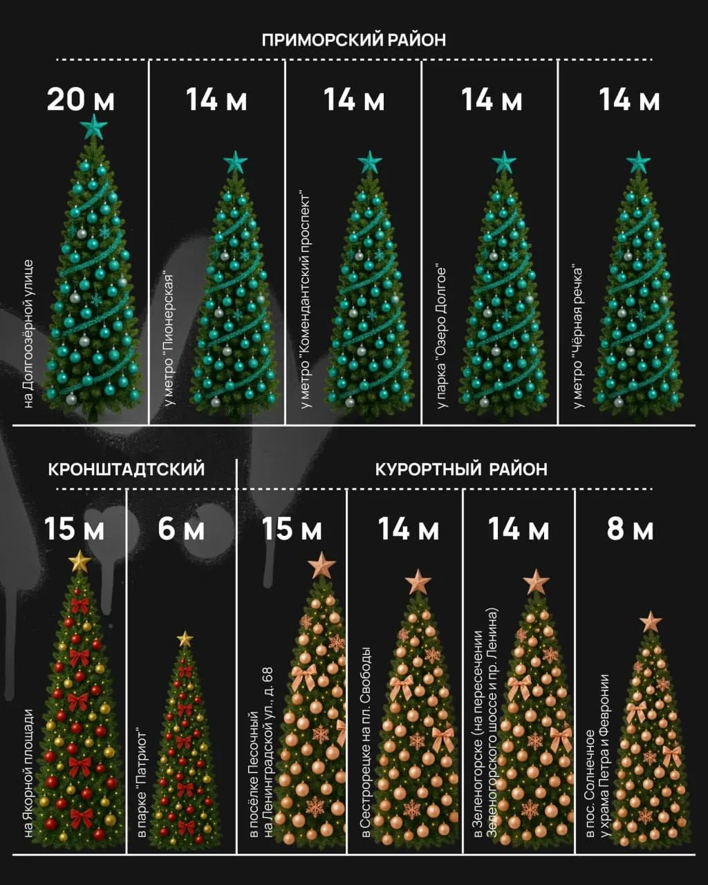 Огромные, зелёные, колючие, — по всему Питеру стоят. Ёлочки начали устанавливать в большинстве районов города, всего их больше 60.