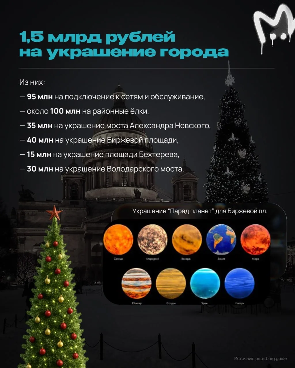 Более 1,5 ярда рублей потратят на украшение Петербурга к Новому году и Рождеству. Самые лухари-районы по традиции — Центральный и Адмиралтейский. На каждый выделят больше 220 миллионов.