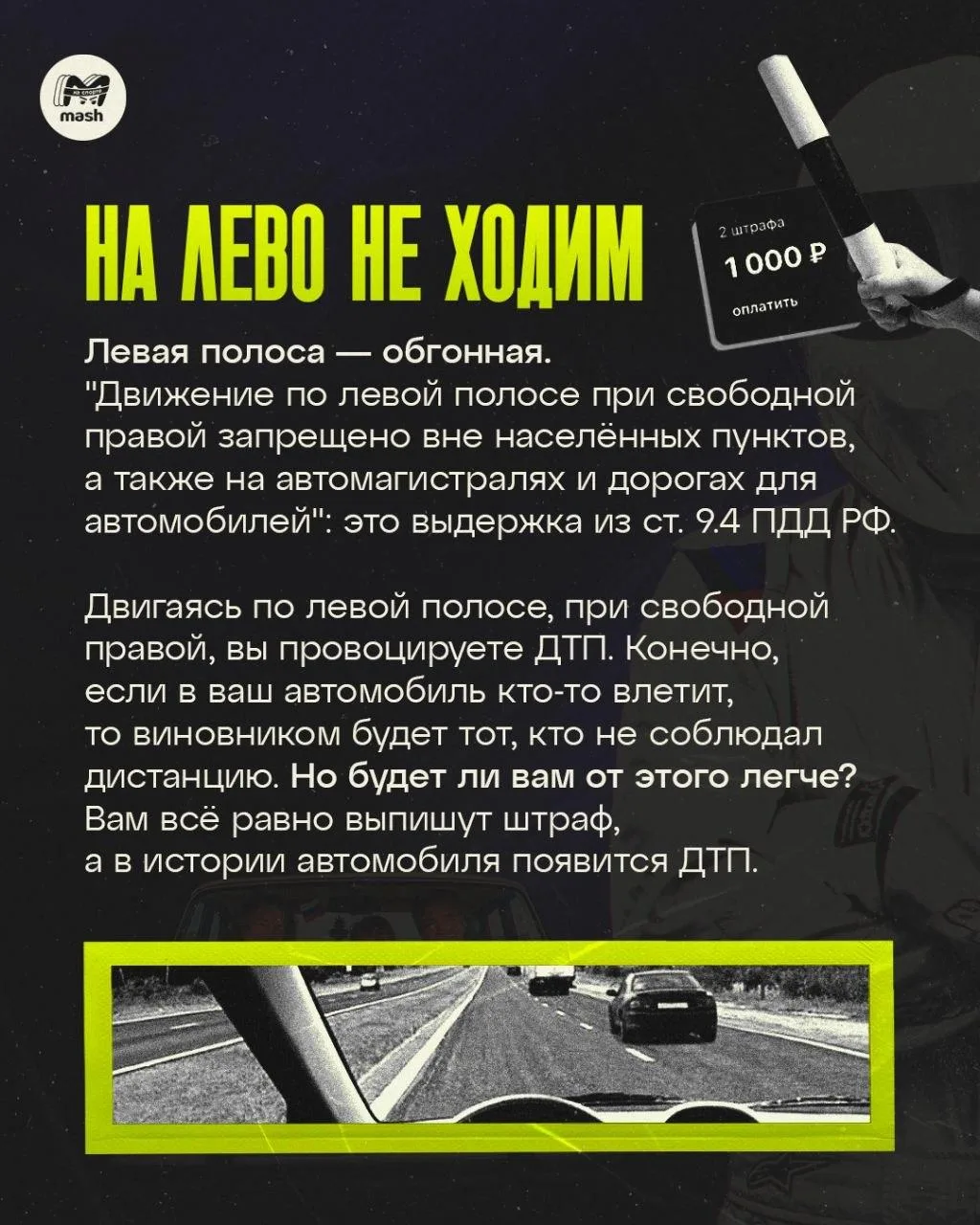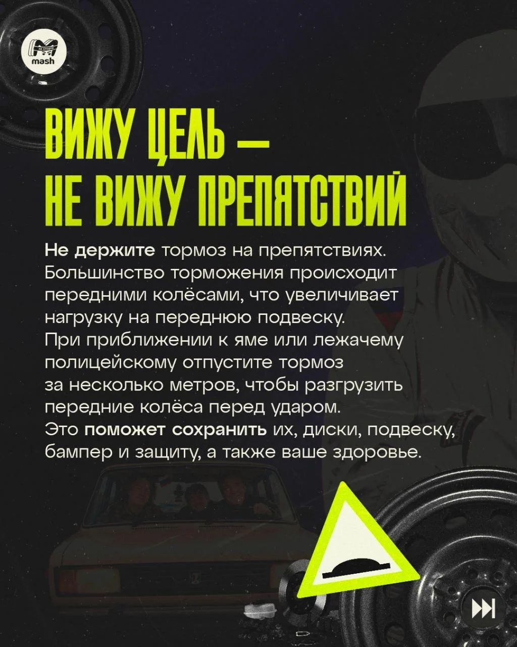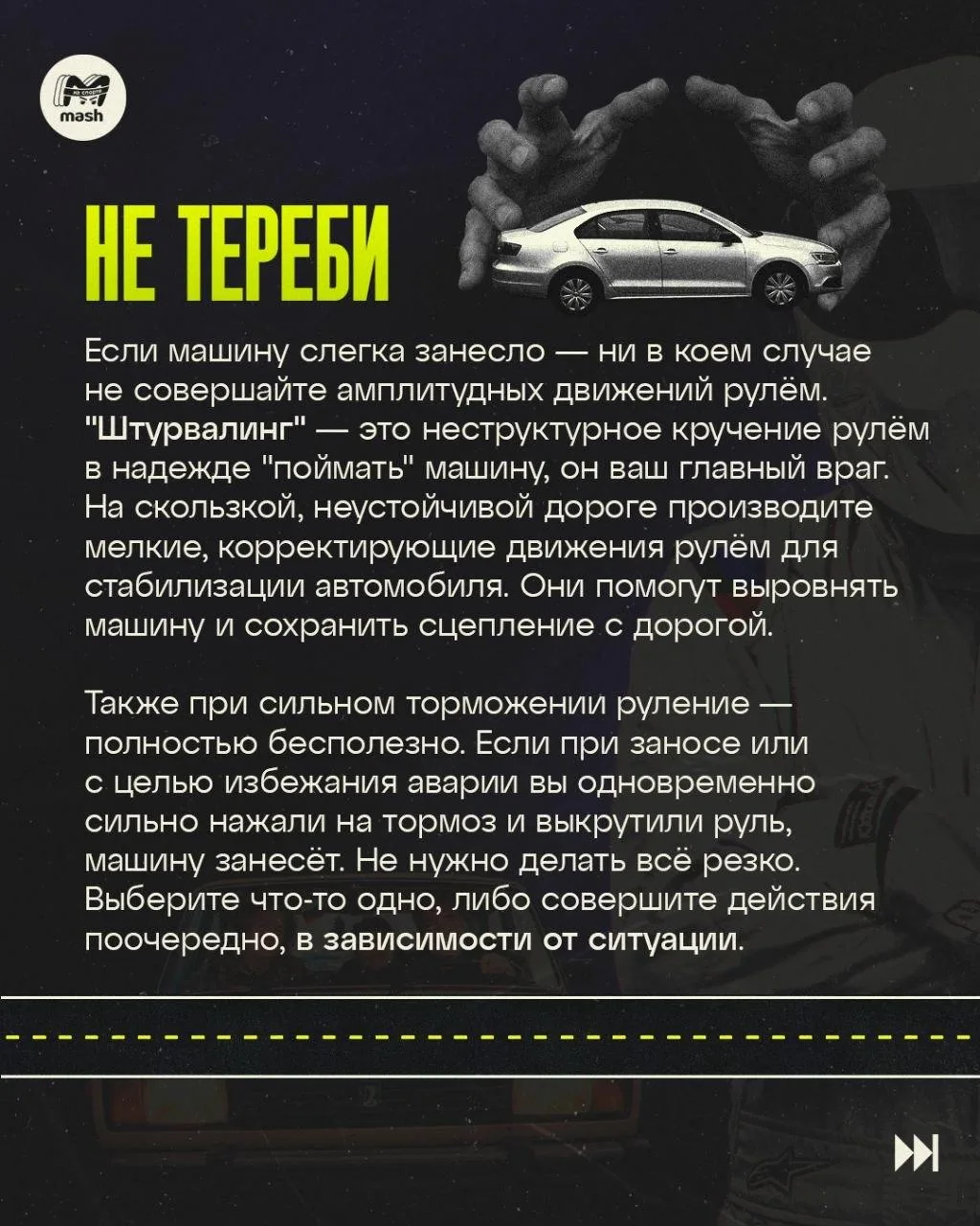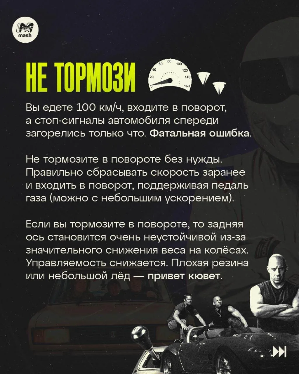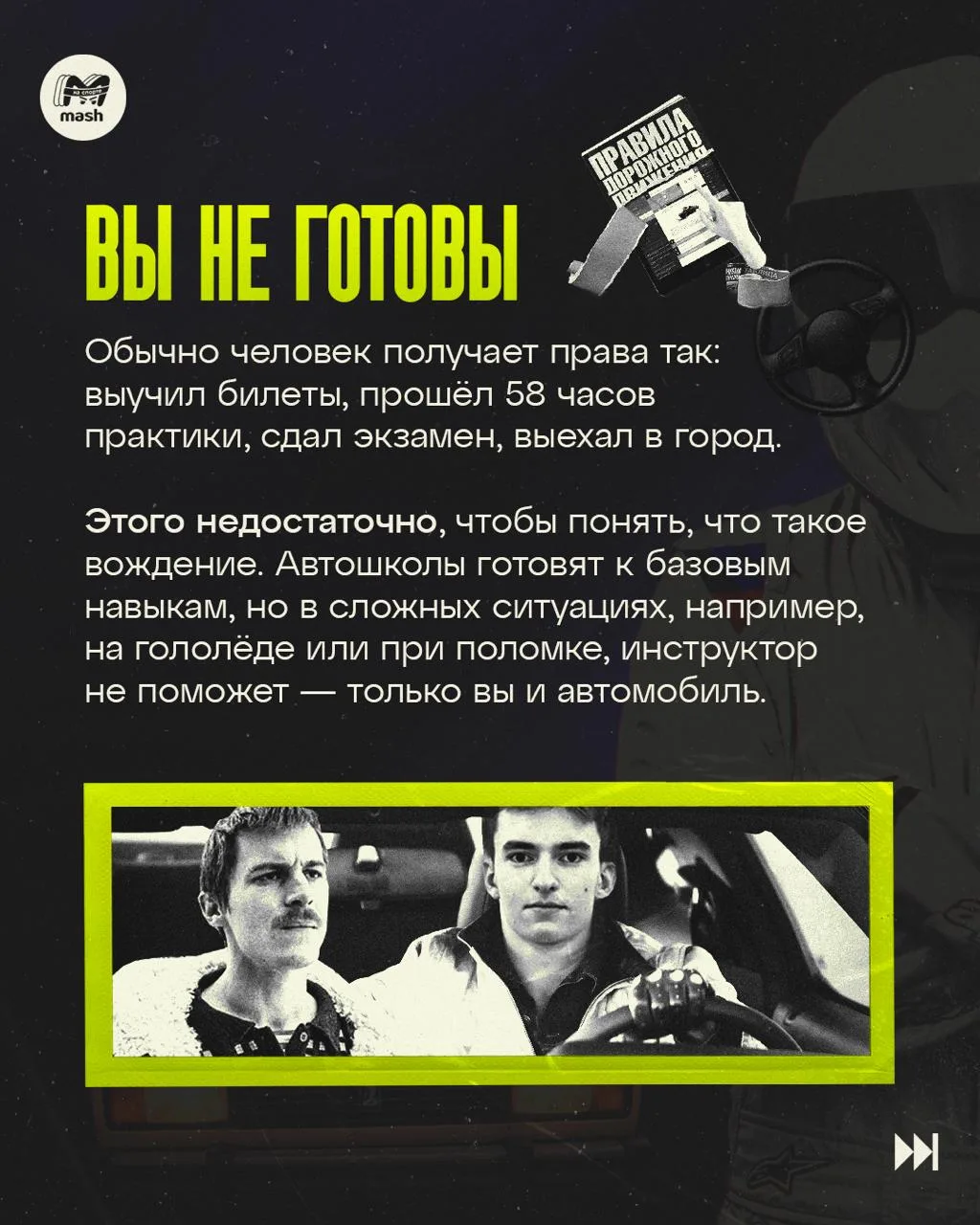 Если не хочешь быть тем самым водителем на дороге, в которого сыпятся 100500 проклятий, — читай новые карточки от Mash на спорте, сделанные вместе с одним из самых молодых пилотов Российской серии кольцевых гонок Романом Щербаковым. Он, как спец, рассказал о главных мифах вождения и закинул несколько советов.