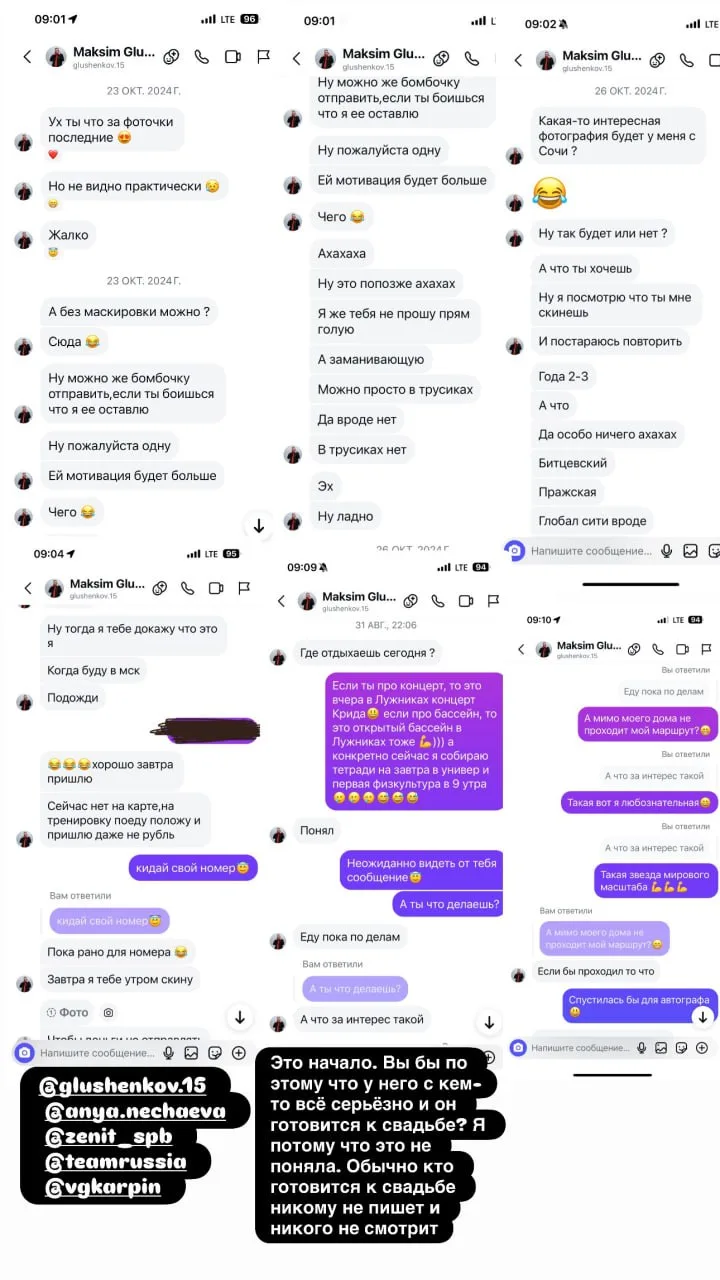 Ранее 18-летняя модель рассказала о своей связи с Глушенковым. С её слов, пара общалась с ноября 2024-го, когда ей было 17 лет. Заявила, что Максим неоднозначно приглашал девушку в отель, просил нюдсы, а после совместной ночи перестал отвечать.
