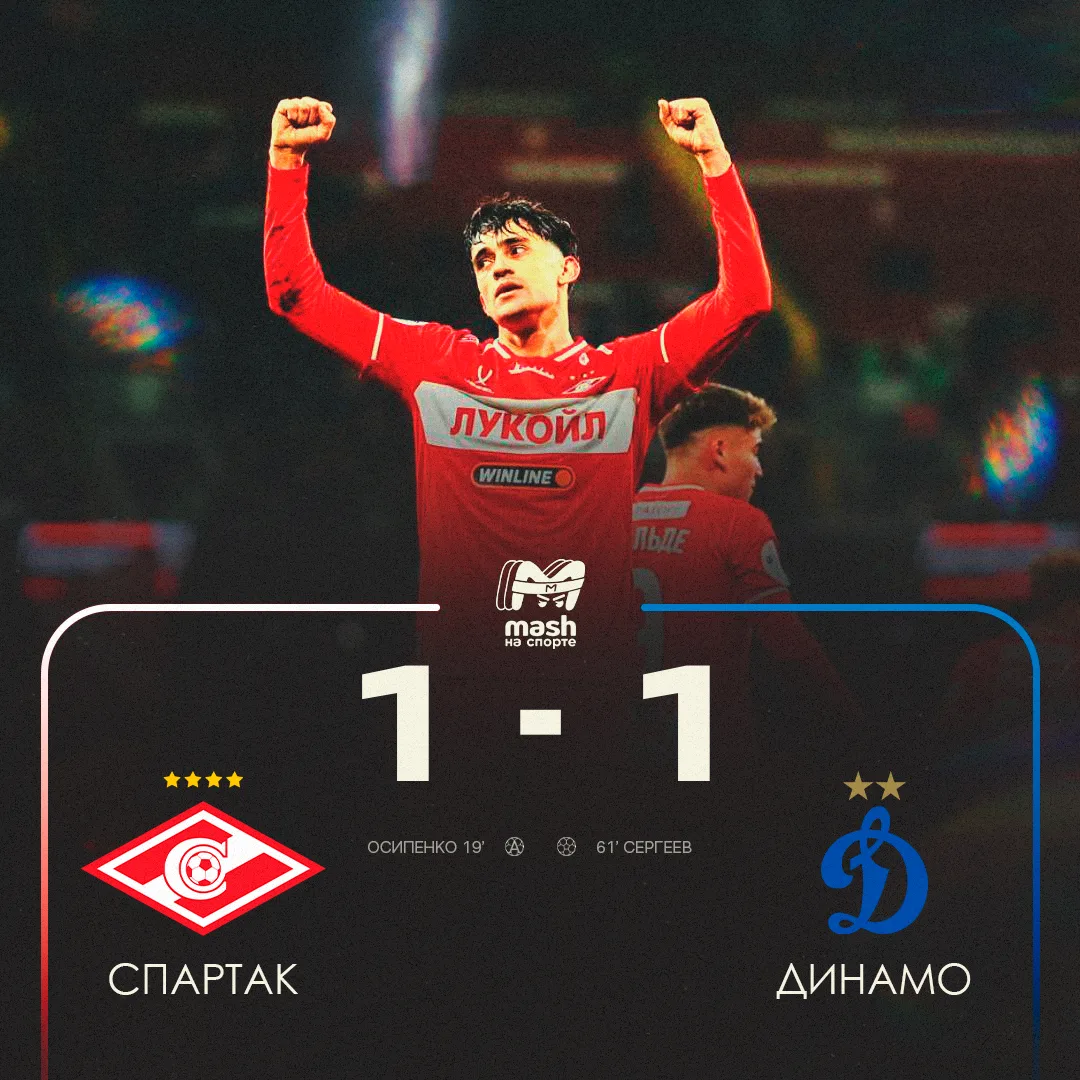 "Спартак" и московское "Динамо" вновь разделили очки в дерби — 1:1.