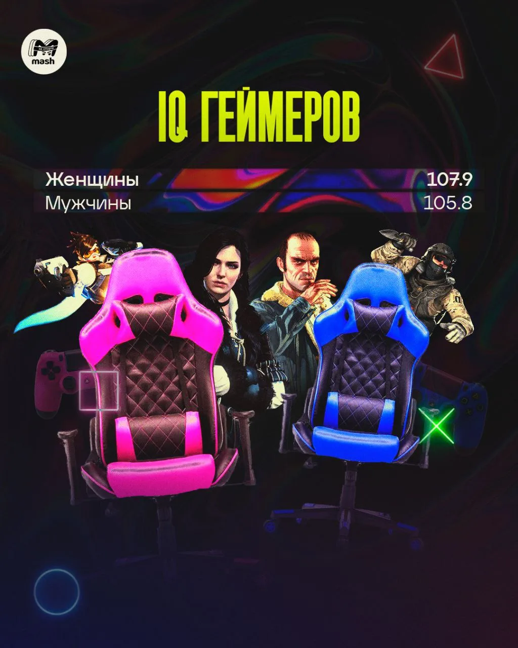 Несмотря на стереотипы, исследование показало, что женщины-геймеры превзошли своих коллег противоположного пола по среднему IQ. Средний показатель у девушек составил 108,1, а у мужчин — 106,7.
