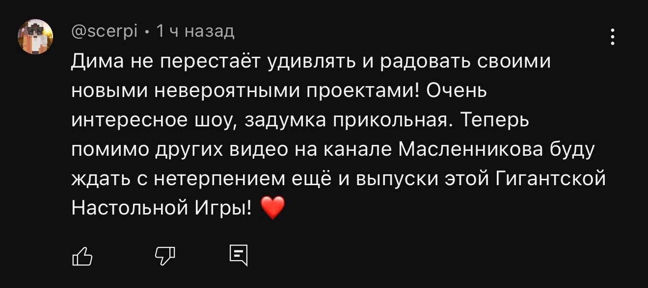 Спасибо за такие тёплые слова… я счастлив, вся команда ликует, потому что каждый приложил свою руку к Гигантской Настольной Игре!