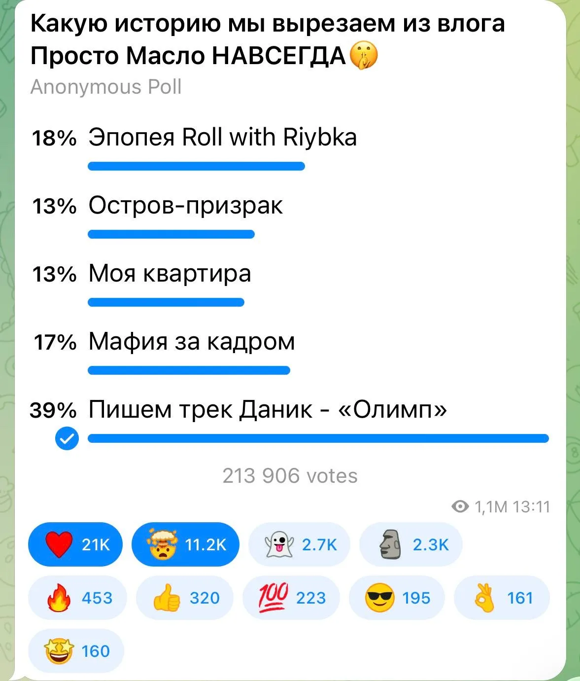 Помните, мы устраивали голосование, какую историю вырезать из предыдущего влога. В итоге вы выбрали написание трека Даника «Олимп».
