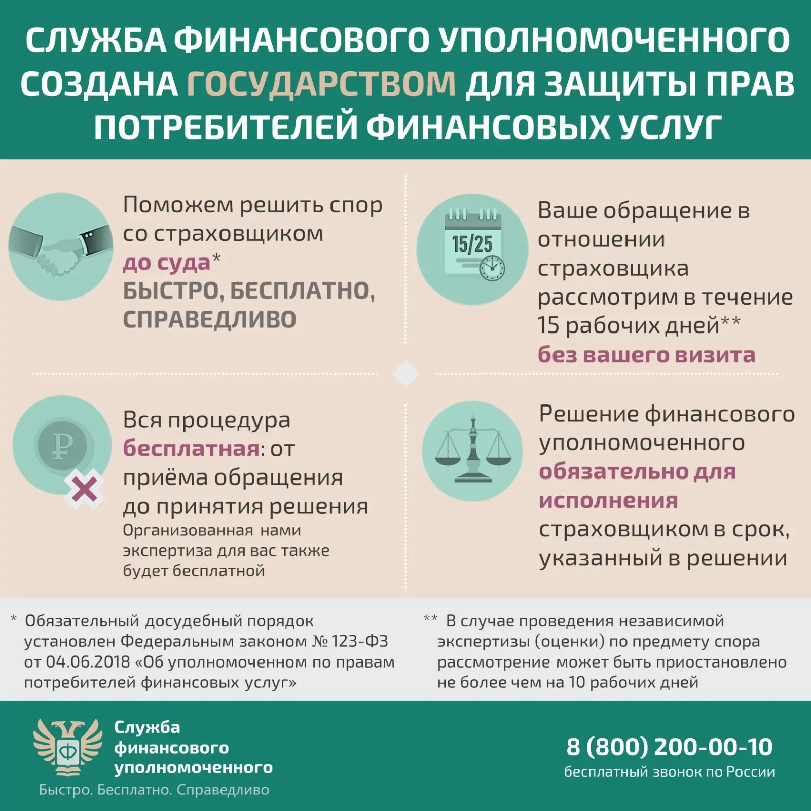 ✅ В случае несогласия со страховой организацией можно бесплатно решить имущественный (денежный) спор без суда