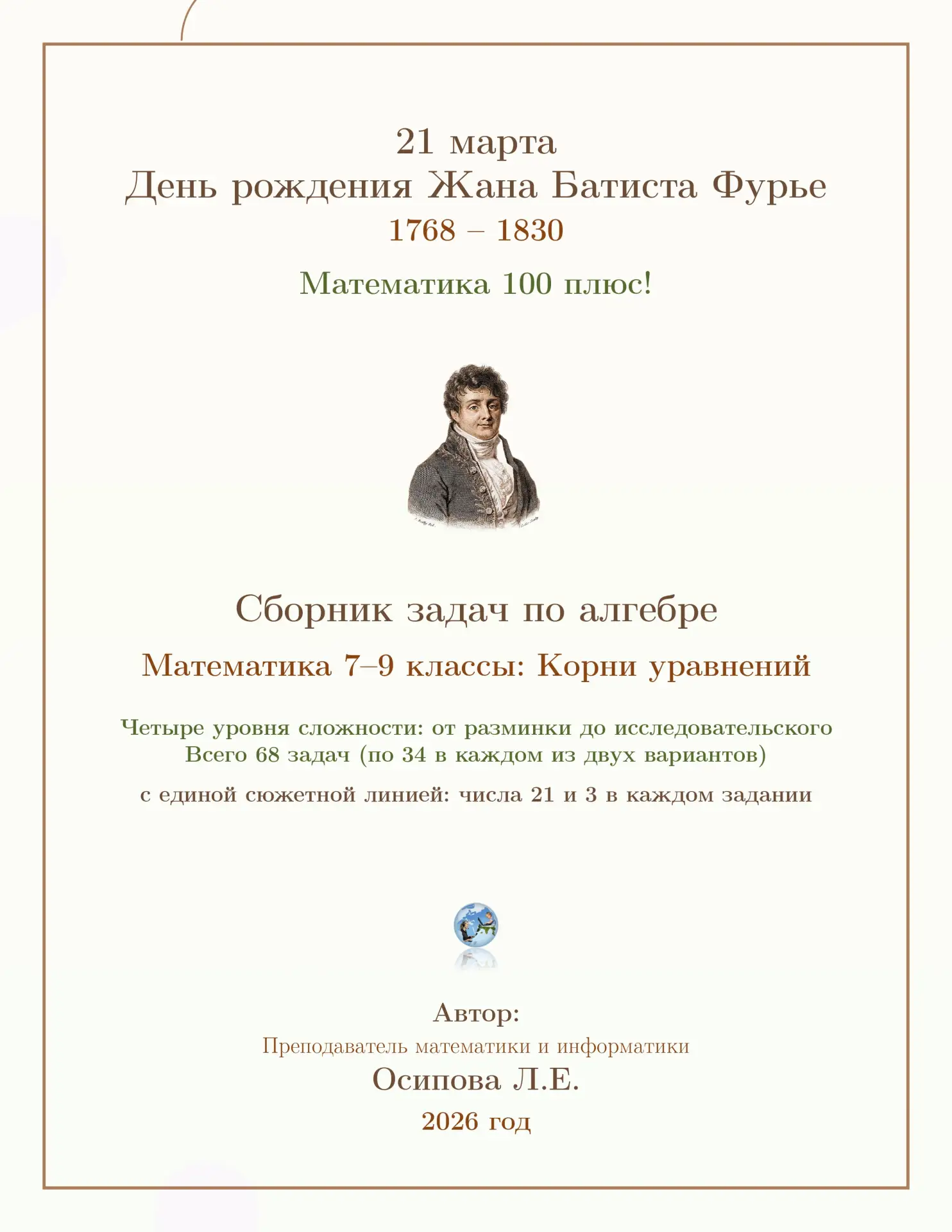 Французский математик Жан Батист Жозеф Фурье (1768–1830) известен не только своими знаменитыми рядами, но и фундаментальными работами по теории алгебраических уравнений. В его честь мы создали тематический сборник задач для учеников 7–9 классов, посвящённый этой дате.