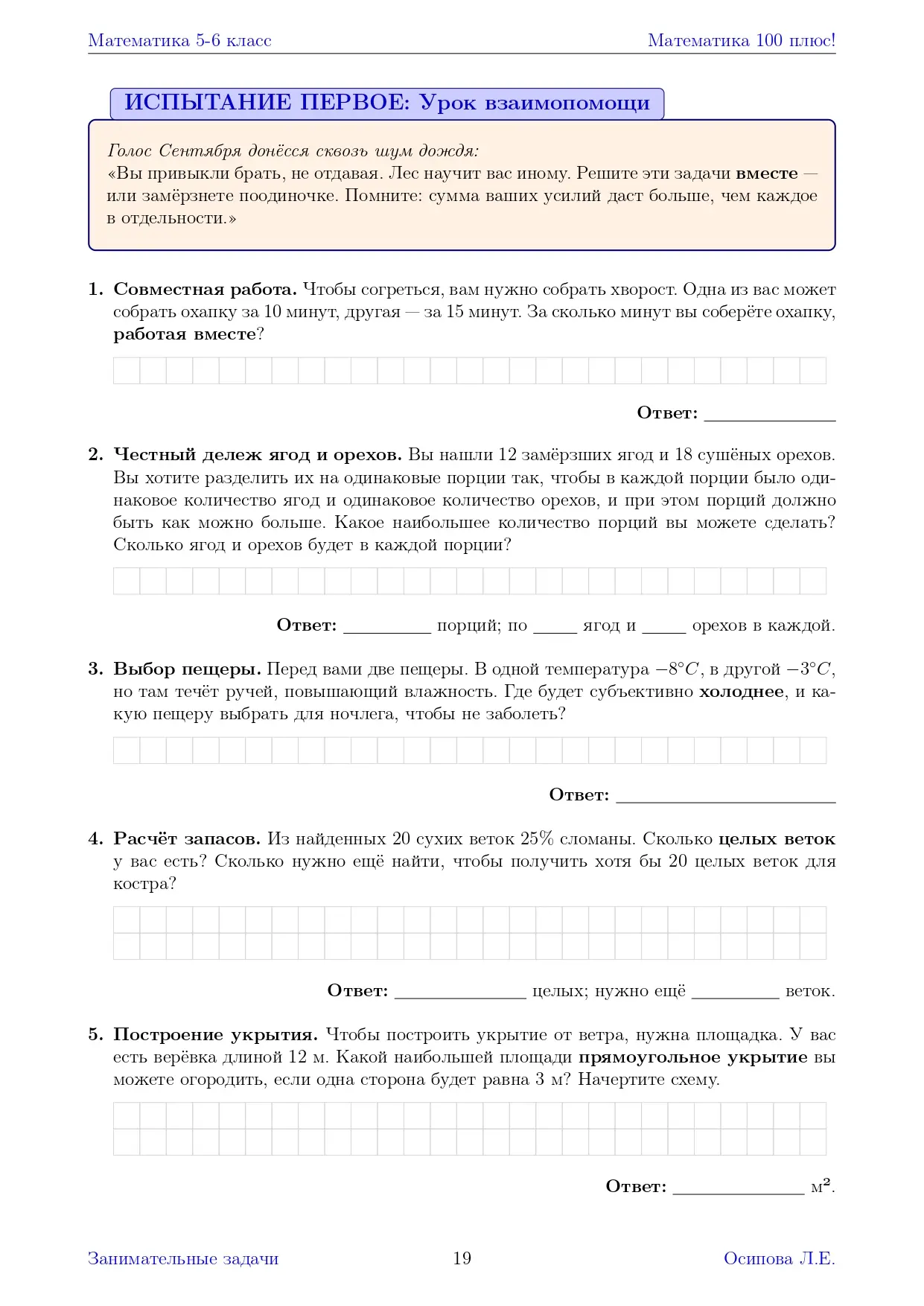 • 6 класс — «Расчёт и смекалка: задачи полевого лагеря»