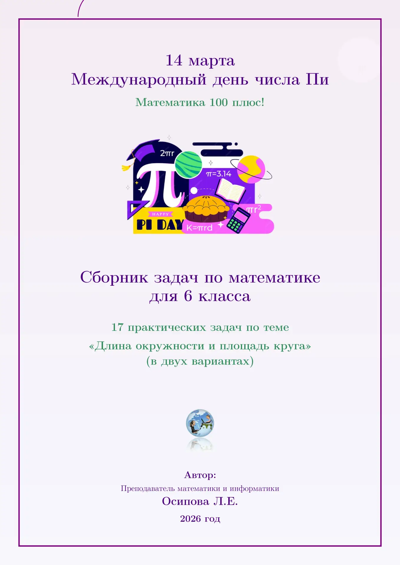 Готов особенный подарок! 🎁 Мы подготовили для вас сборник задач по математике для 6 класса, посвящённый этому удивительному числу. В нём вы найдёте: 17 задач в двух вариантах на вычисление длины окружности и площади круга.