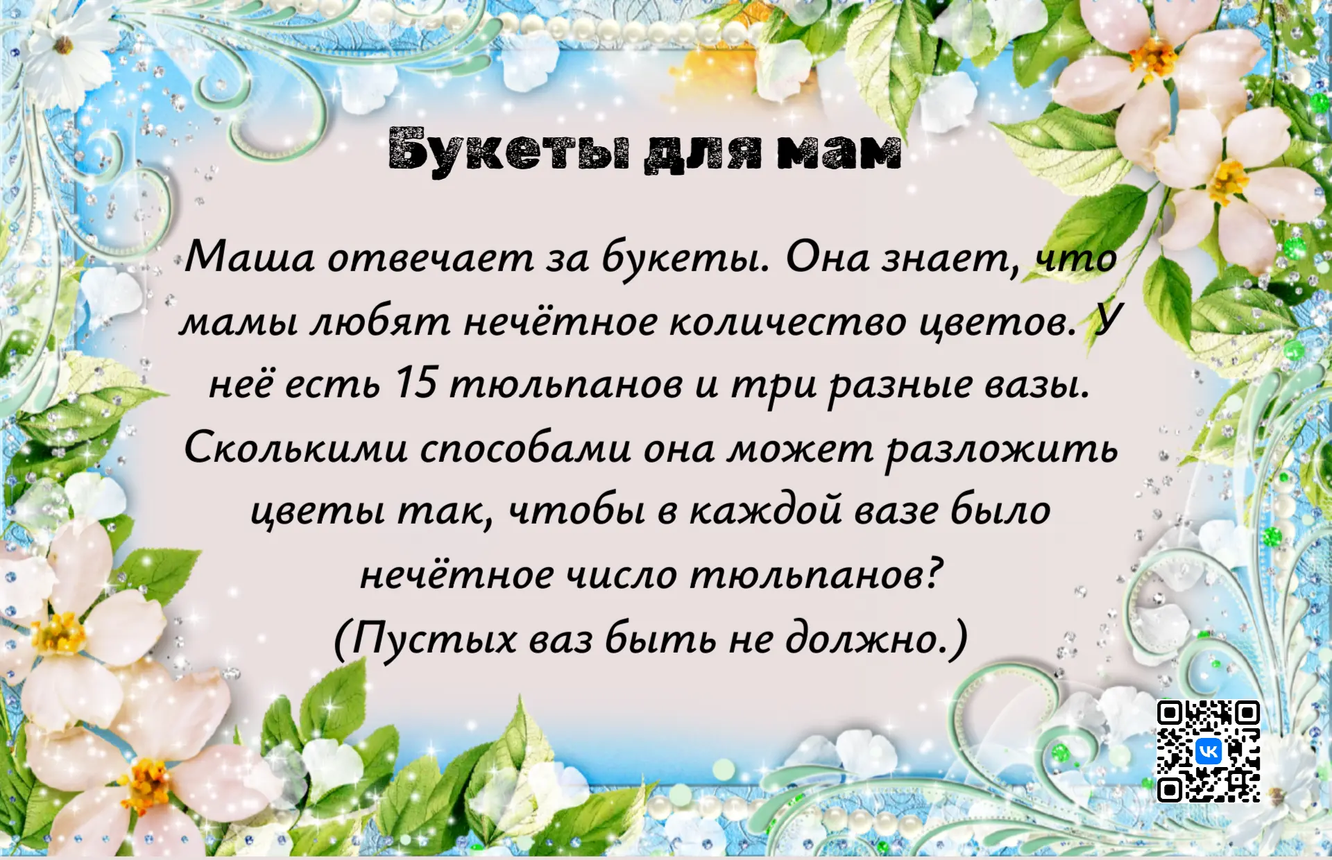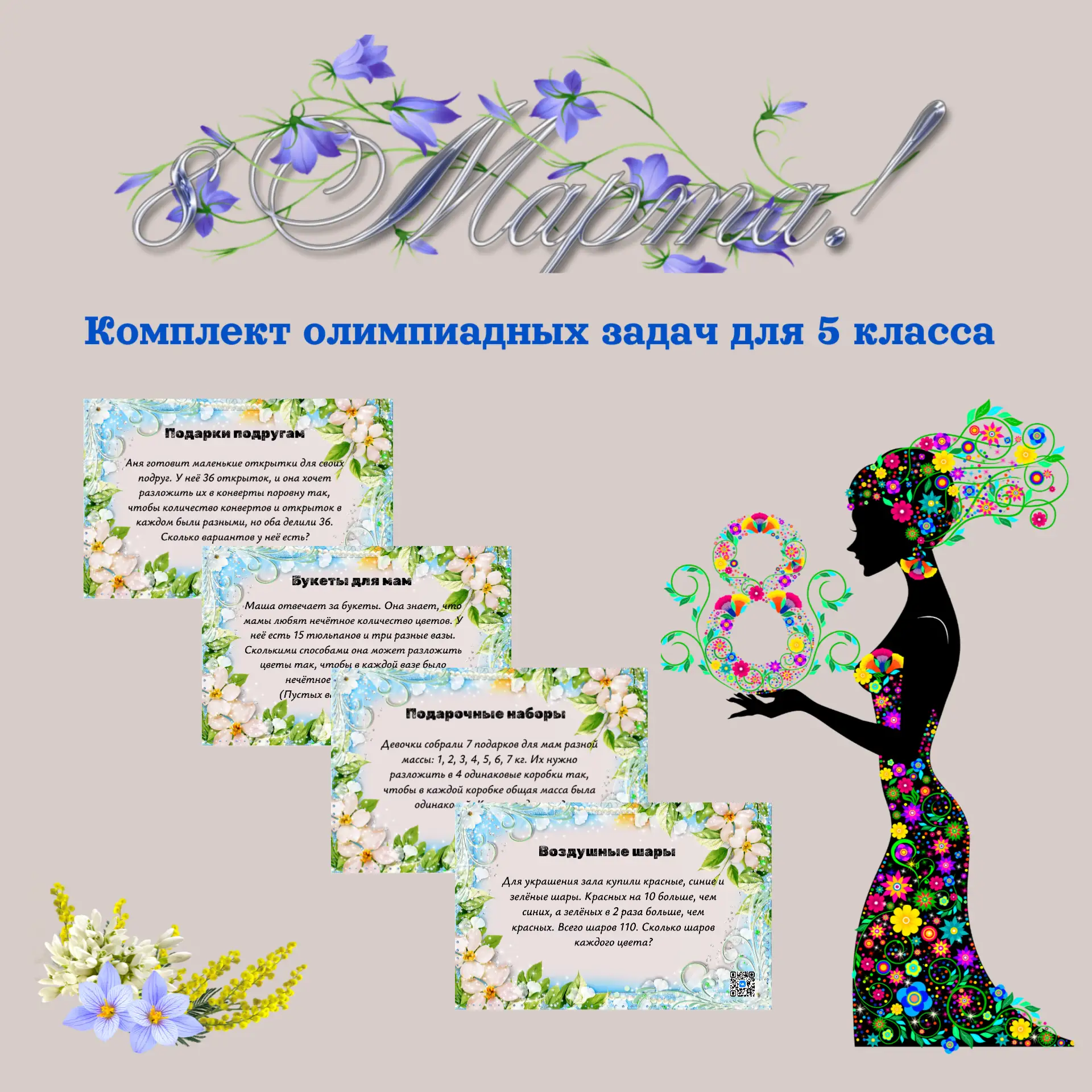 Приближается 8 Марта, и мы подготовили для вас особенный подарок — сборник олимпиадных задач по математике для 5 класса, объединённых праздничным сюжетом «Сюрприз для мамы»! 🎁