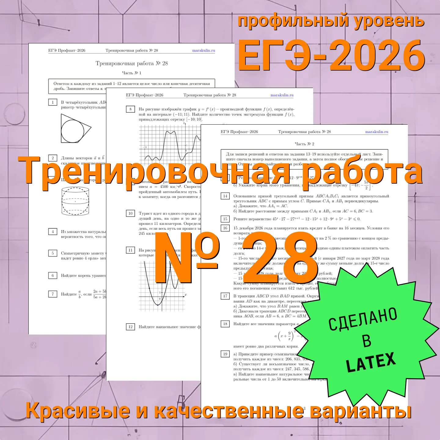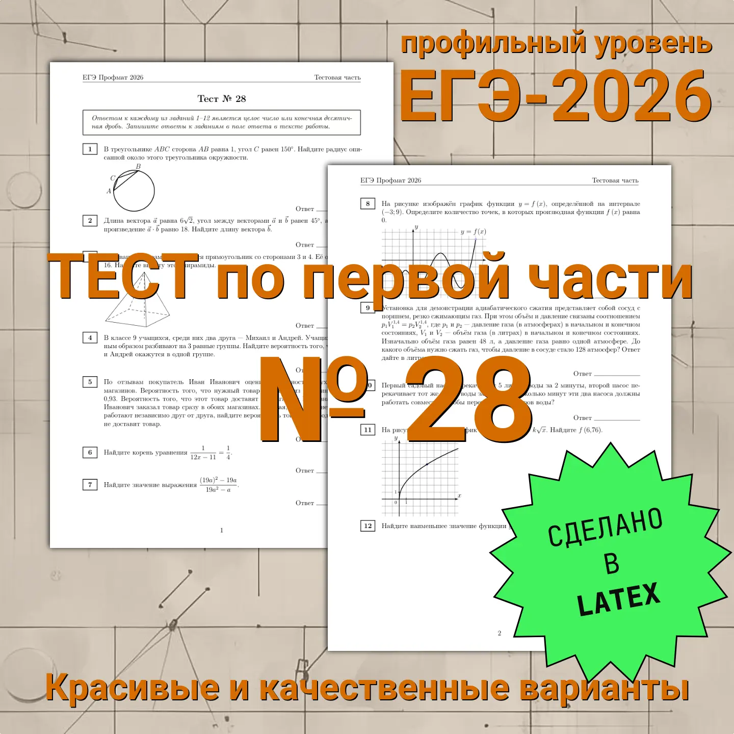 ➡️ Перед вами Вариант № 28. Мы движемся к нашей цели — 35 идеальных тестов по первой части по профильной математике, которых хватит на весь учебный год! Каждый вариант — это тщательная работа, безупречная верстка в LaTeX и внимание к каждой детали программы.