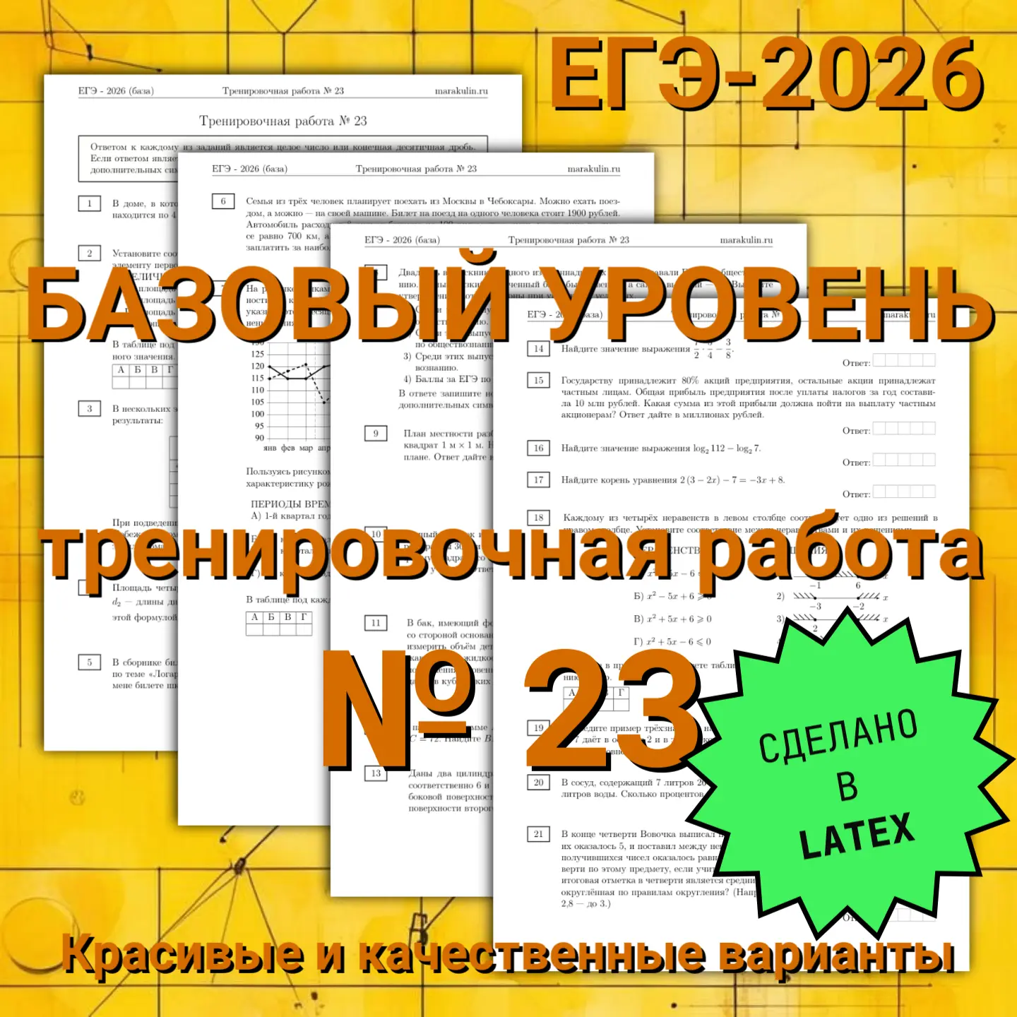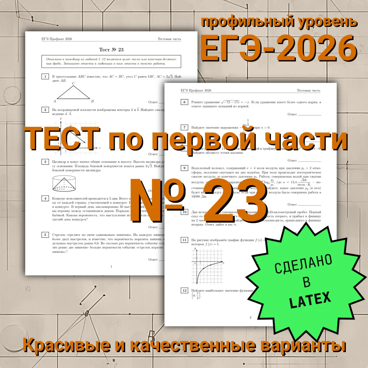 ➡️ Перед вами Вариант № 23. Мы движемся к нашей цели — 35 идеальных тестов по первой части по профильной математике, которых хватит на весь учебный год! Каждый вариант — это тщательная работа, безупречная верстка в LaTeX и внимание к каждой детали программы.