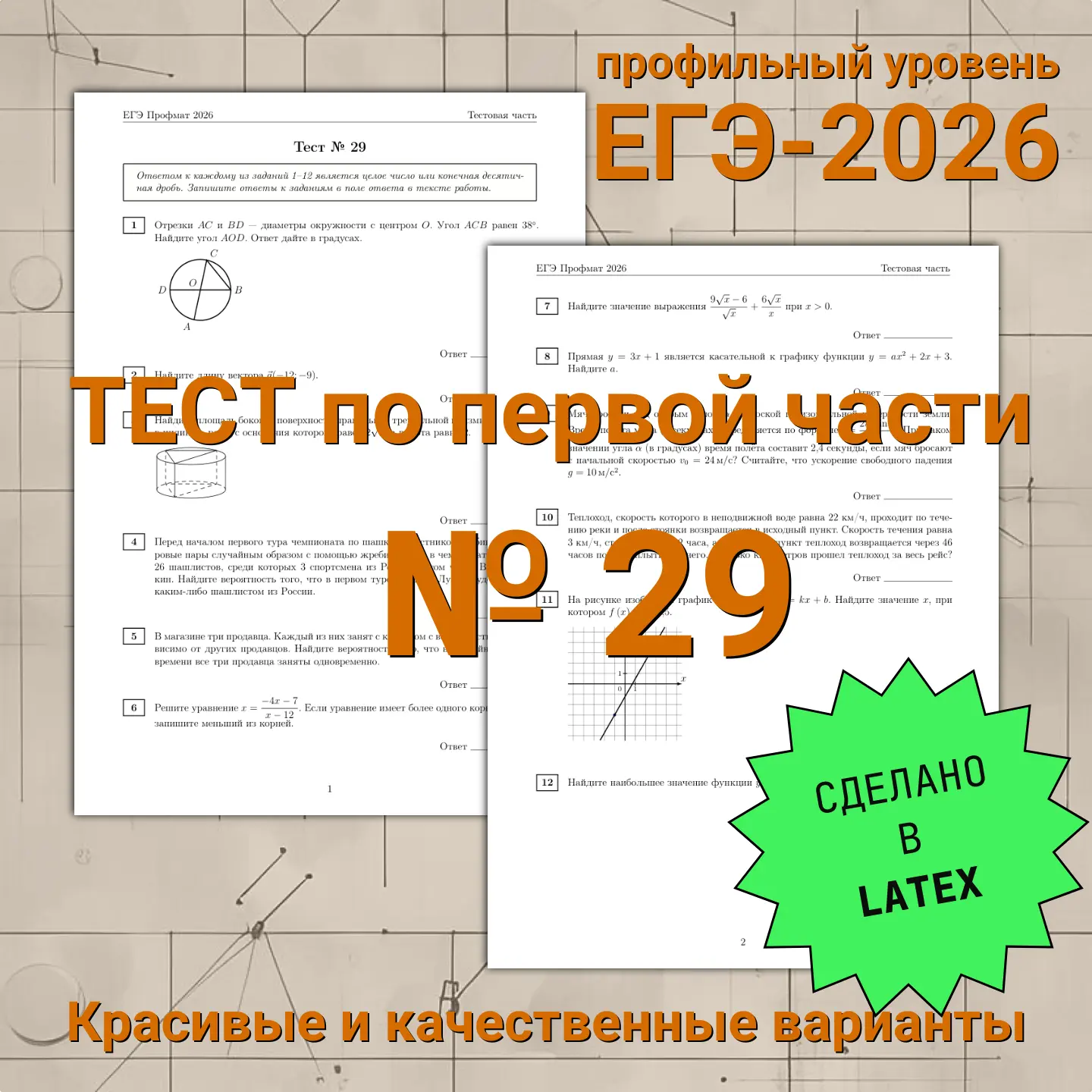 ➡️ Перед вами Вариант № 29. Мы движемся к нашей цели — 35 идеальных тестов по первой части по профильной математике, которых хватит на весь учебный год! Каждый вариант — это тщательная работа, безупречная верстка в LaTeX и внимание к каждой детали программы.