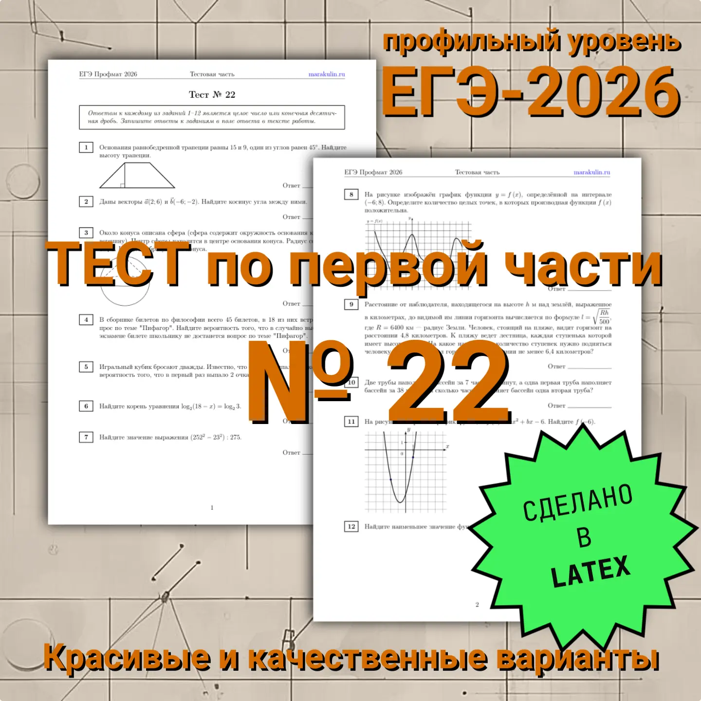➡️ Перед вами Вариант № 22. Мы движемся к нашей цели — 35 идеальных тестов по первой части по профильной математике, которых хватит на весь учебный год! Каждый вариант — это тщательная работа, безупречная верстка в LaTeX и внимание к каждой детали программы.
