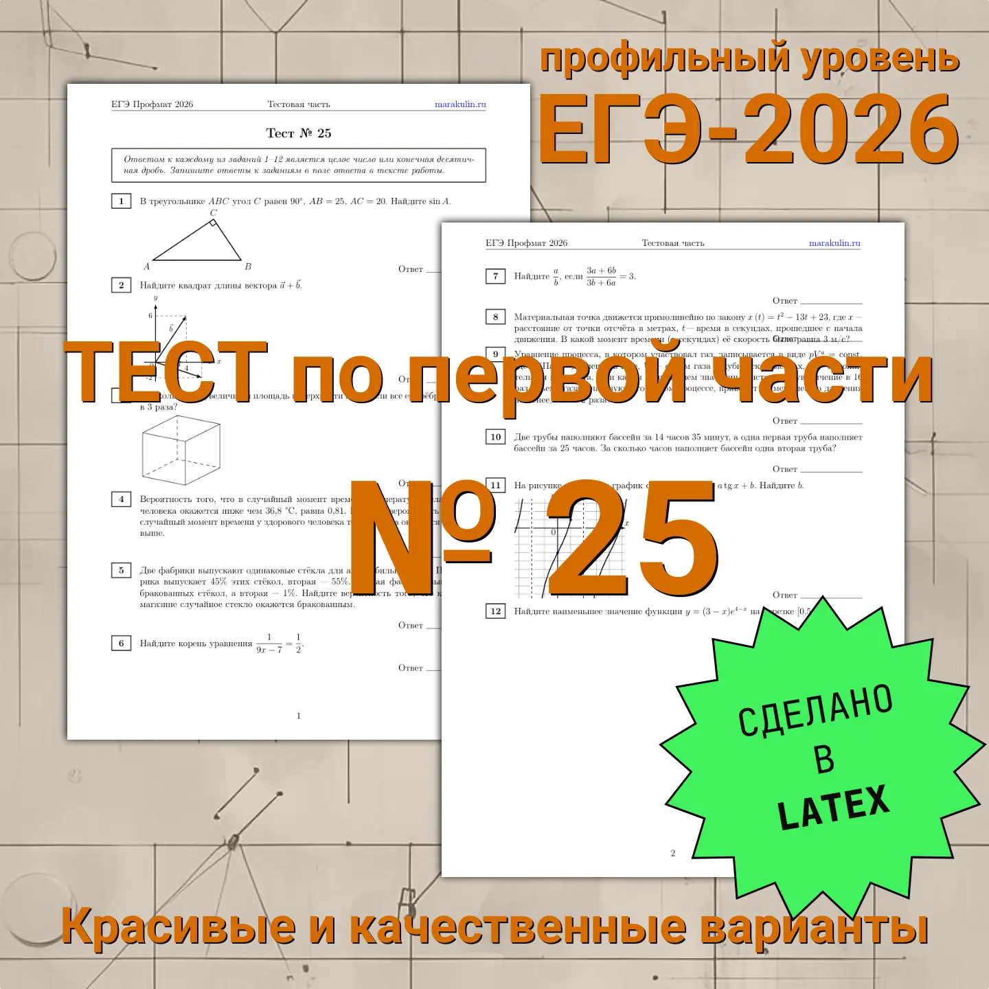➡️ Перед вами Вариант № 25. Мы движемся к нашей цели — 35 идеальных тестов по первой части по профильной математике, которых хватит на весь учебный год! Каждый вариант — это тщательная работа, безупречная верстка в LaTeX и внимание к каждой детали программы.