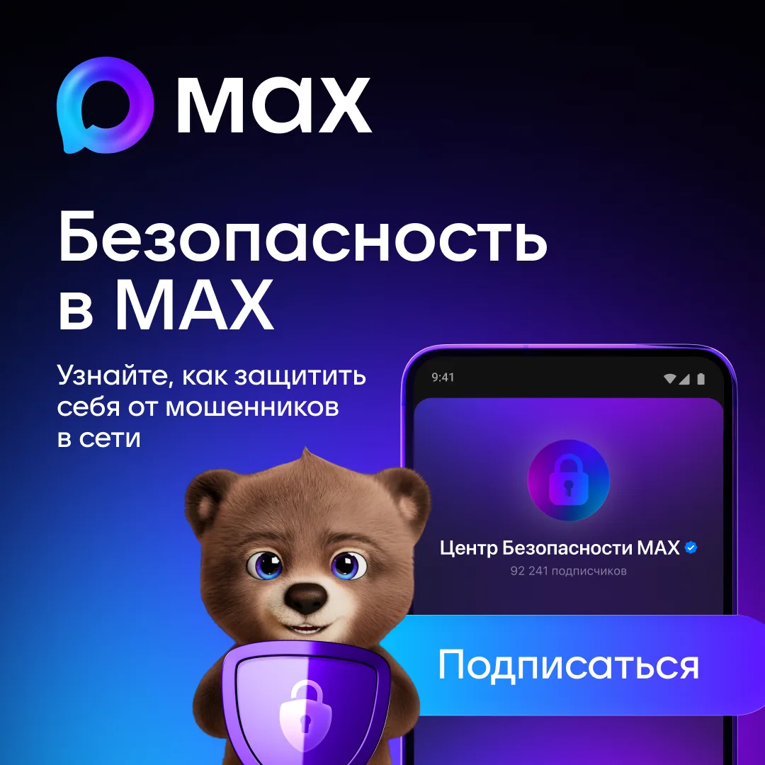 Узнайте, как защитить себя и близких от угроз в сети, — подпишитесь на Центр Безопасности MAX. Там разбираем актуальные схемы обмана и делимся советами, как от них защититься