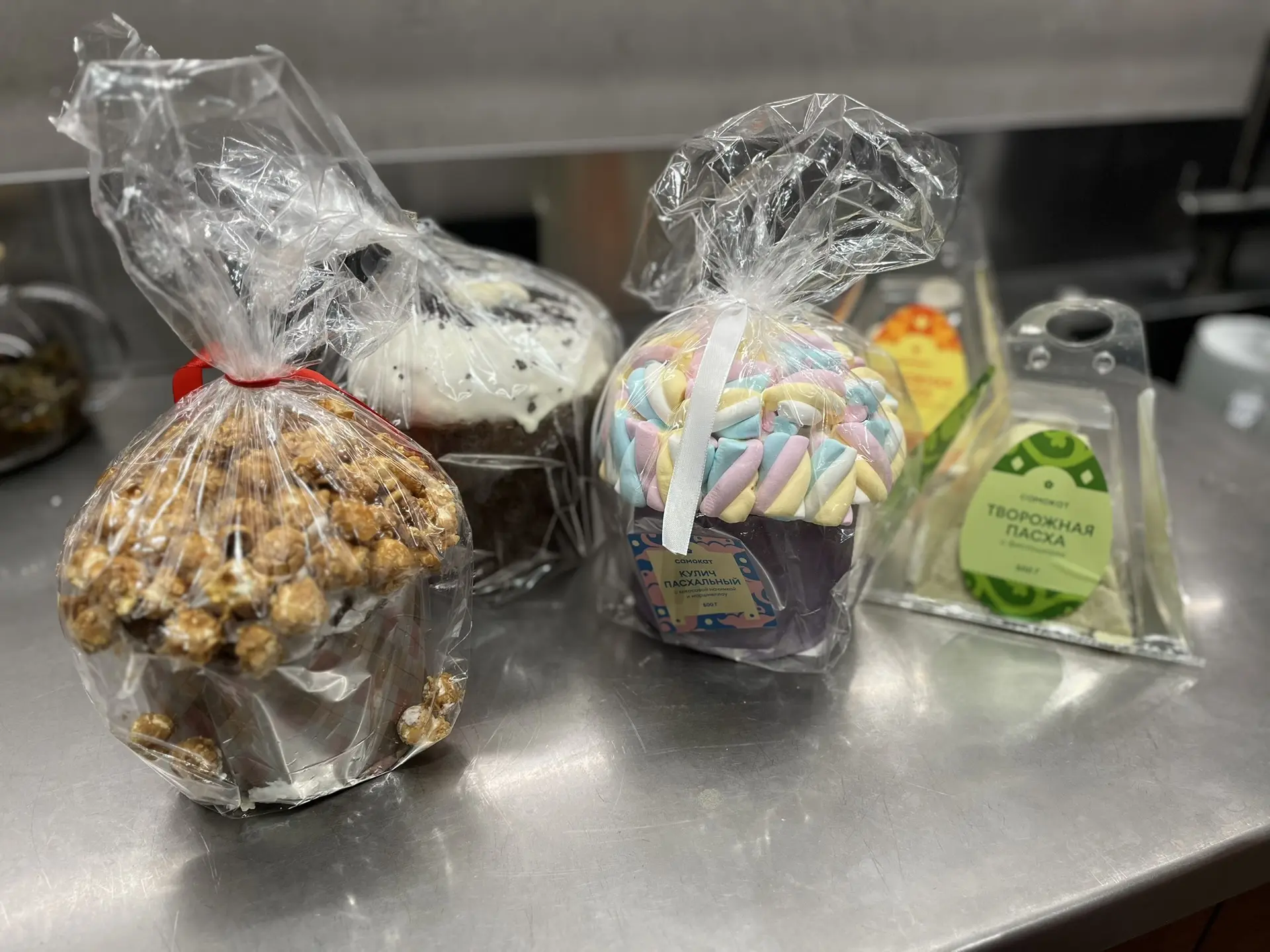 Спрашивали меня тут, кстати, где можно взять куличи к Пасхе, если не печь самим. Вот в «Самокате» есть такие варианты, очень красивые. Мне больше всего понравилась классика с глазурью, а Габи — с маршмеллоу.