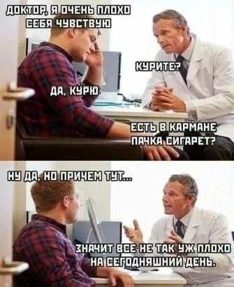 Знаете, есть такой прикол: подходишь к человеку, просишь закурить, но при этом показываешь на запястье, как обычно делают, когда интересуются временем. Всегда крыша едет. Вот и здесь так.