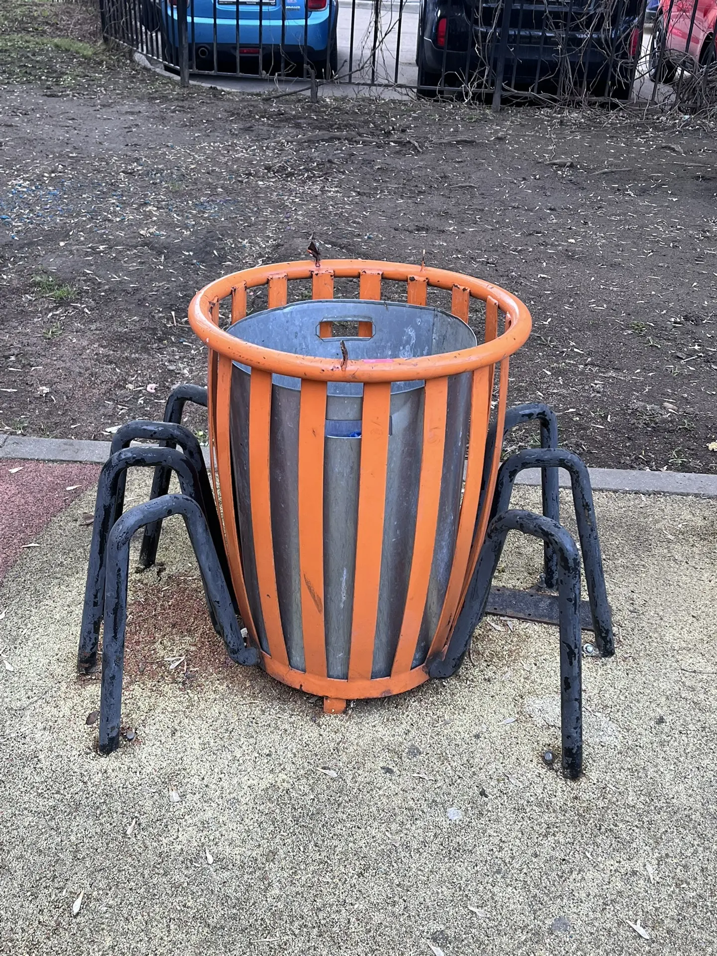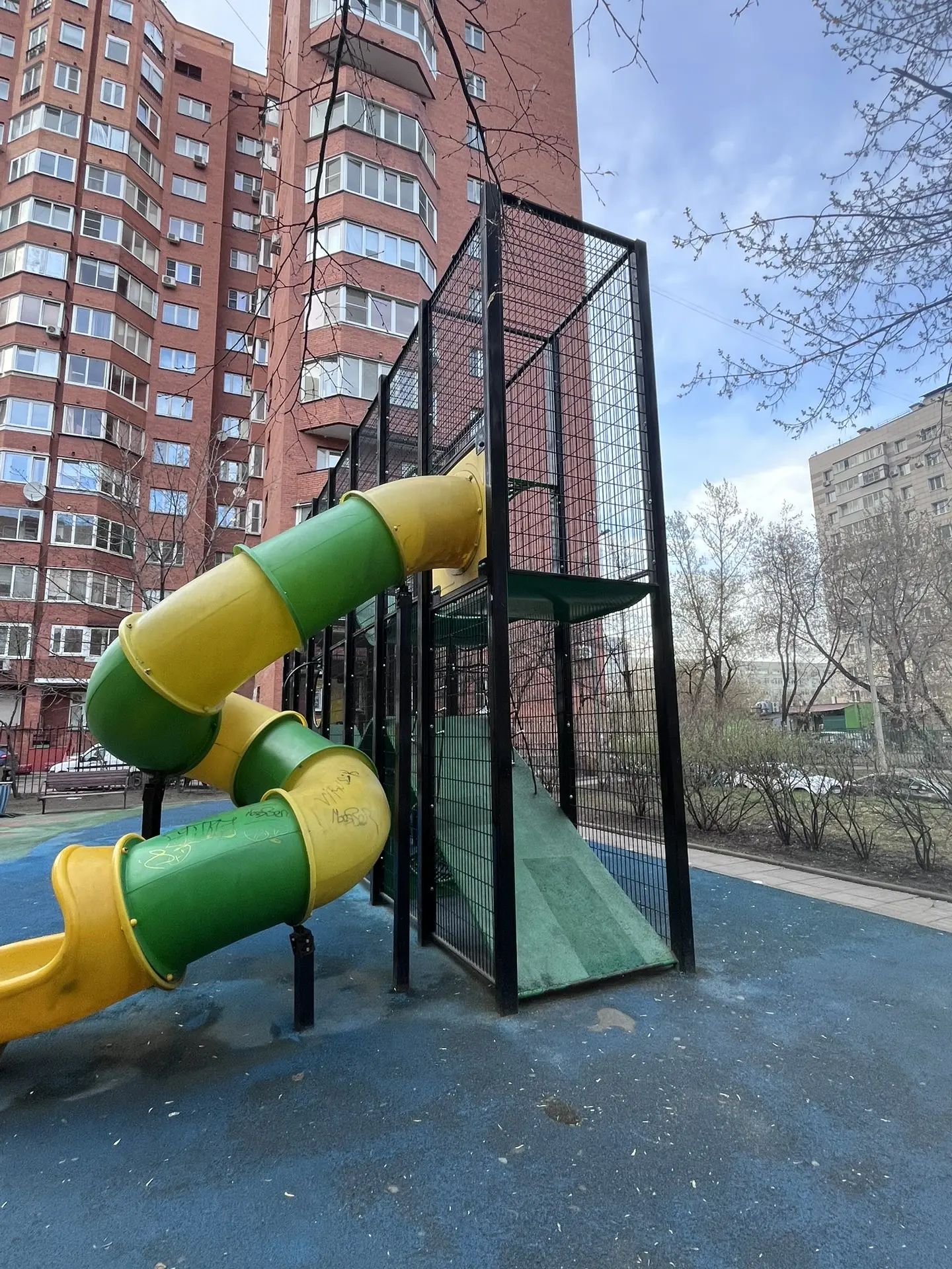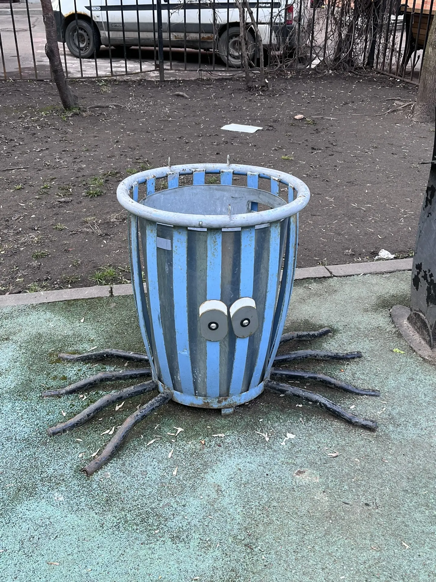 Такая вот детская площадка мне попалась. Вот эти урны в виде пауков хороши. Это чтоб они детям снились, да?