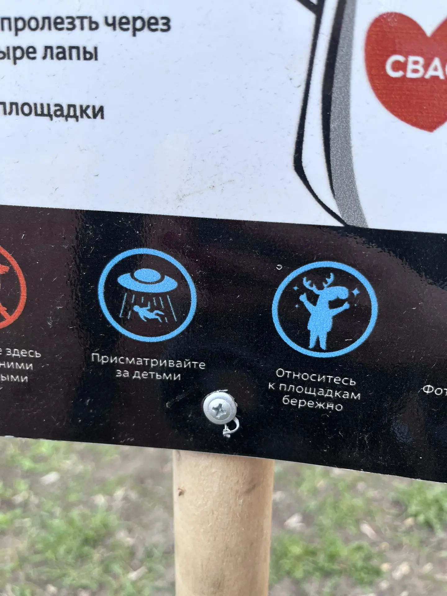 Так, это ещё не всё. С этой площадки ребёнка может украсть НЛО, а ещё её ломает ЛОСЬ.
