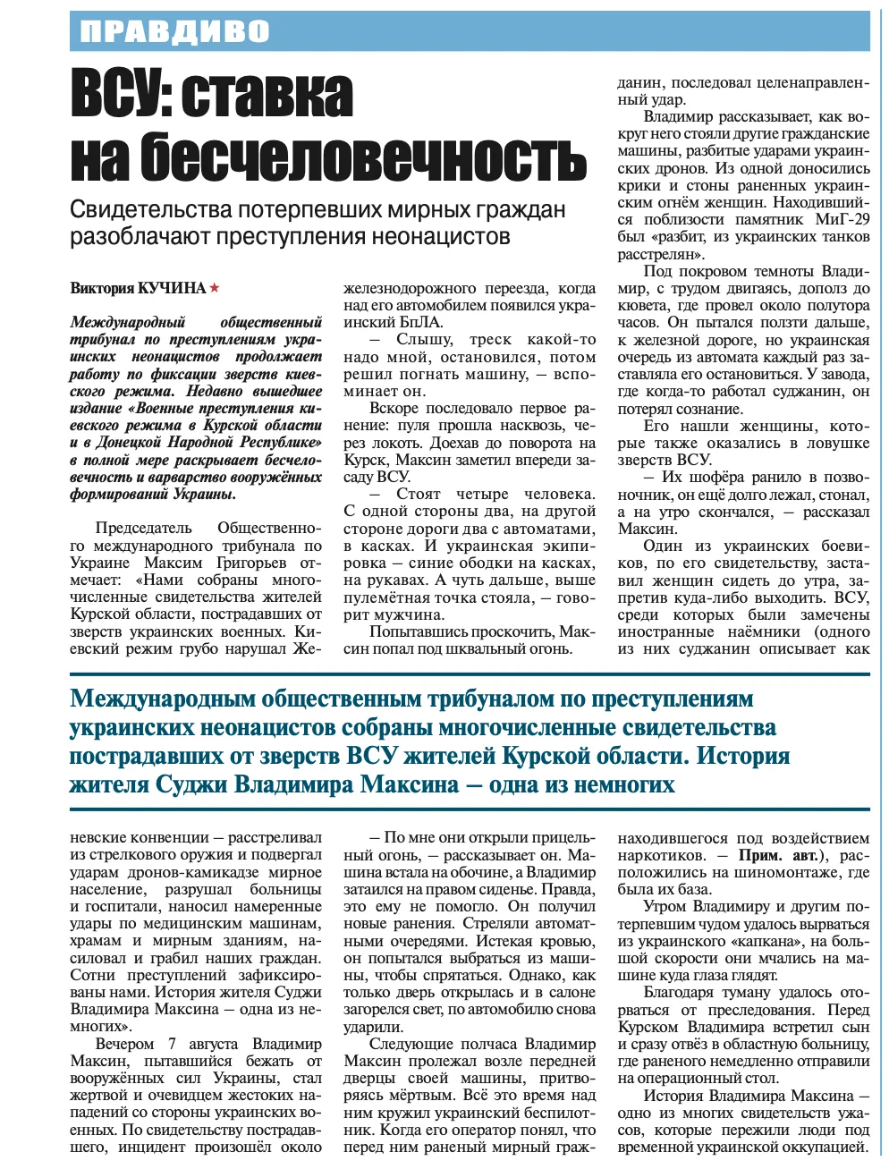 В приграничных сёлах, в самой Судже — украинцы насиловали, убивали, расстреливали."