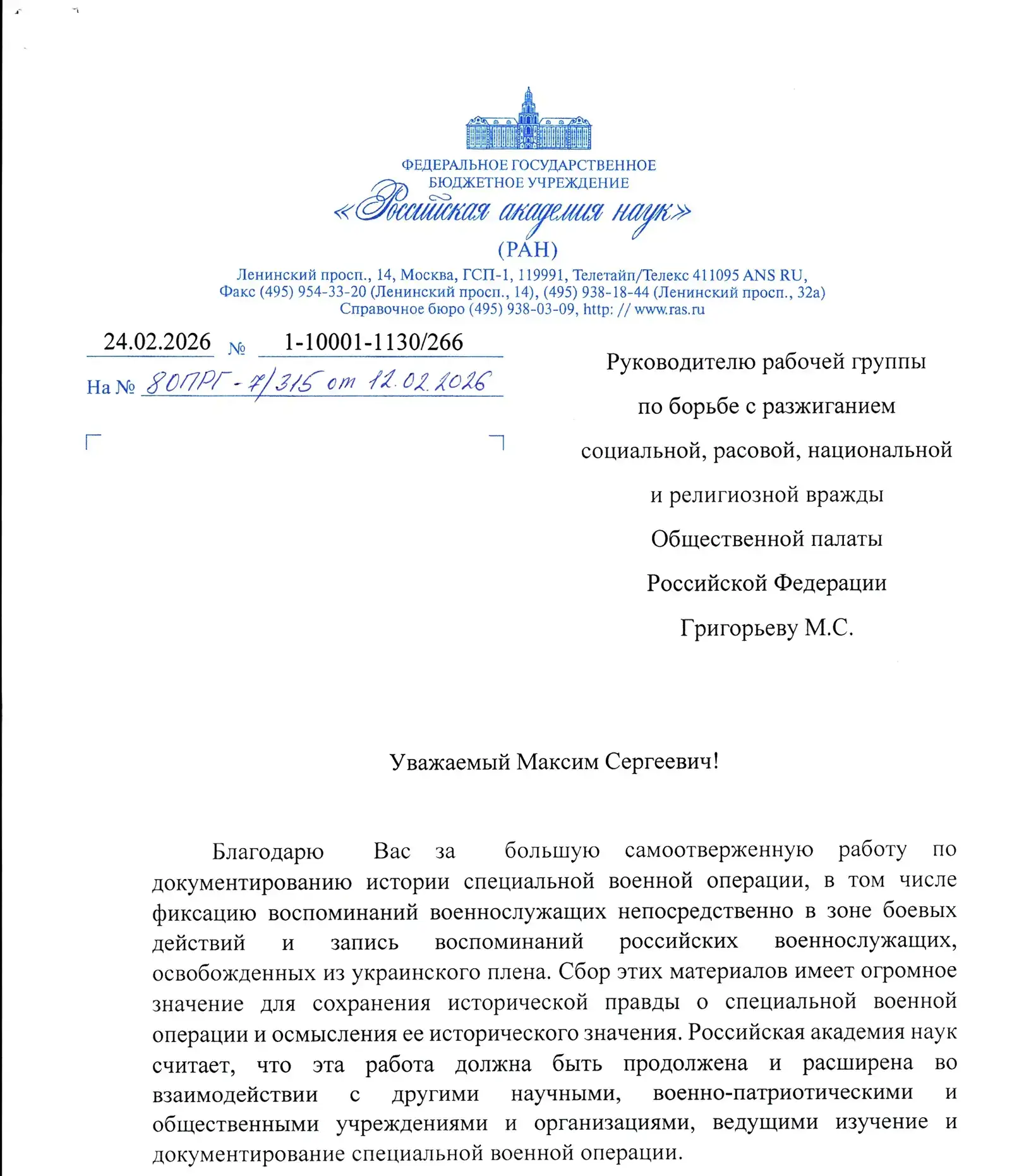 То, что делает Максим Григорьев, формируя такой корпус источников, имеет огромное значение. Эти материалы уже становятся частью архивов, используются в научной, образовательной и исследовательской работе и будут служить основой для дальнейших исторических исследований".